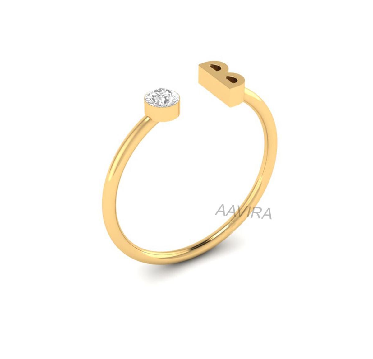 Alphabet Open Cuff Moissanite Diamond Ring, Initial Letter B Ring, Minimalist Bezel Set Ring, Name Letter Ring, Personalized Gift For Her