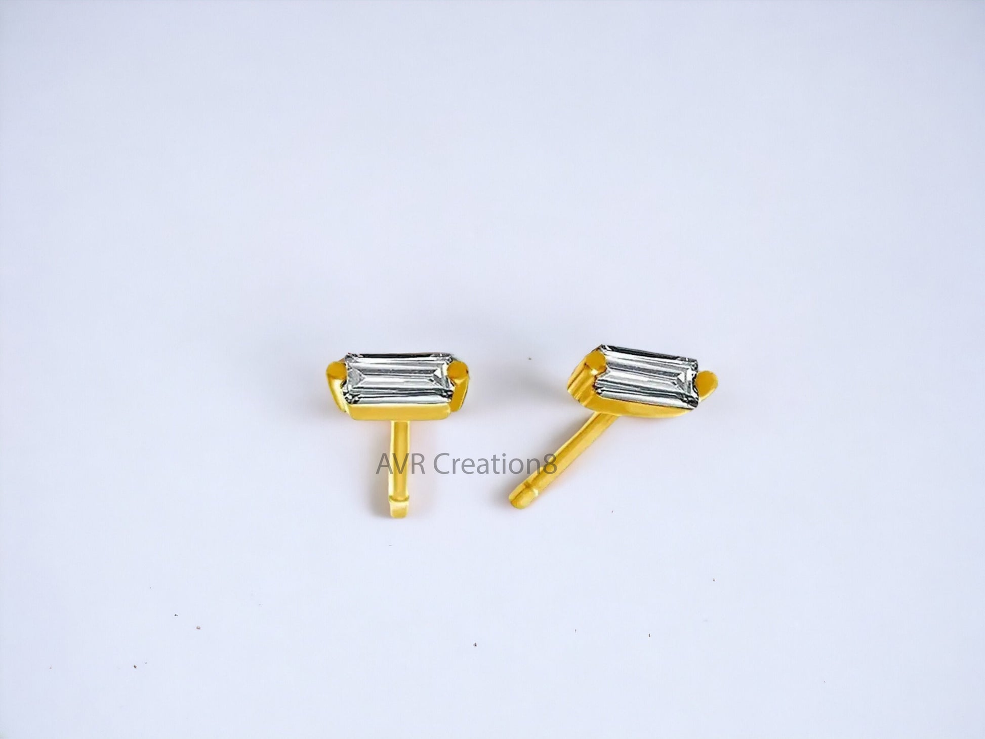 Baguette Cut Dainty Diamond Push back Stud Earrings For Women, 14k Yellow Gold Plated, Minimalist Stud Earrings, Valentine's Gifts For Her