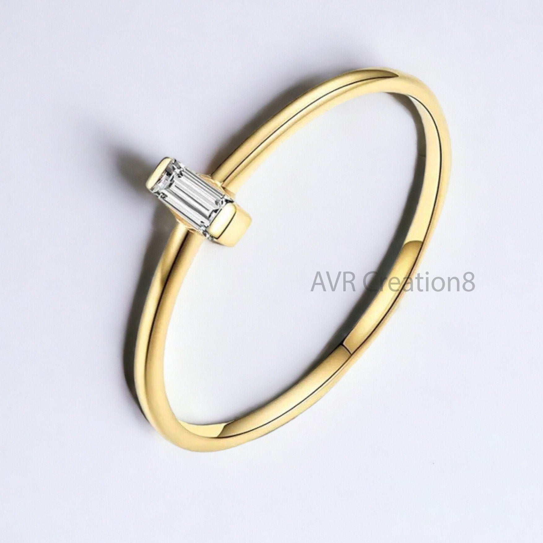 Single Stone Baguette Cut Diamond Ring, Baguette Diamond Ring, 925 Silver Diamond Ring, Gifts For Girlfriend, Gifts For Her, Promise Ring, Baguette Diamond Ring, Handmade Diamond Ring, Small Engagement Ring, Wedding Stacking Band, Baguette Solitaire Ring, Handmade Jewelry