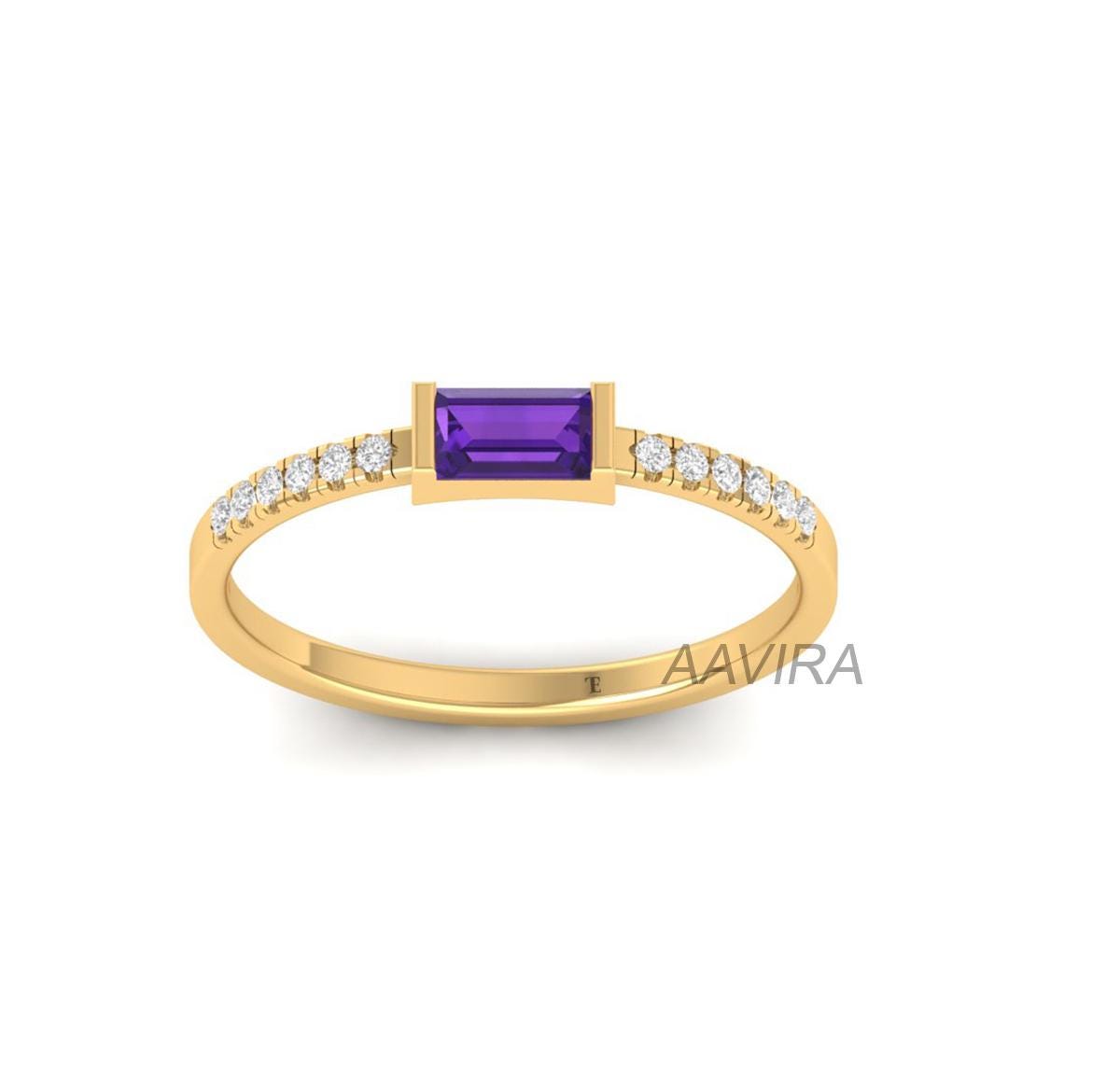Crafted in warm gold, this ring is perfect as a unique minimalist engagement ring, a meaningful May birthstone gift, or a chic stacking ring to complement your existing collection. Its delicate design is ideal for everyday wear, adding a sophisticated touch of color and sparkle to any outfit. This ring is an ideal gift for her, whether for a birthday, anniversary, or a special occasion.