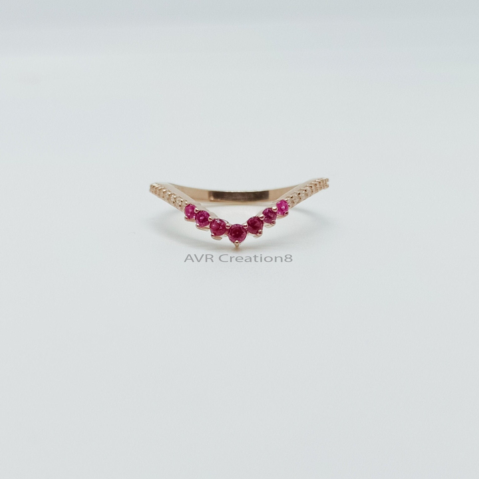 Chevron Wedding Ring, Pink Ruby Engagement Ring, Ruby Gemstone Silver Ring, Birthstone Ring, Ruby Ring, Curved Band, Chevron Wedding Ring
