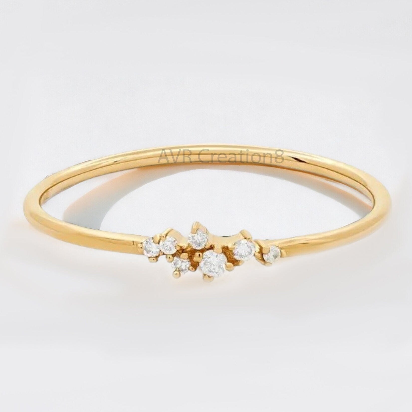 Cluster Dainty Diamond Wedding Ring, Minimalist Diamond Ring, Stackable Ring, 925 Sterling Silver, Anniversary Gifts, Gifts For Girlfriend