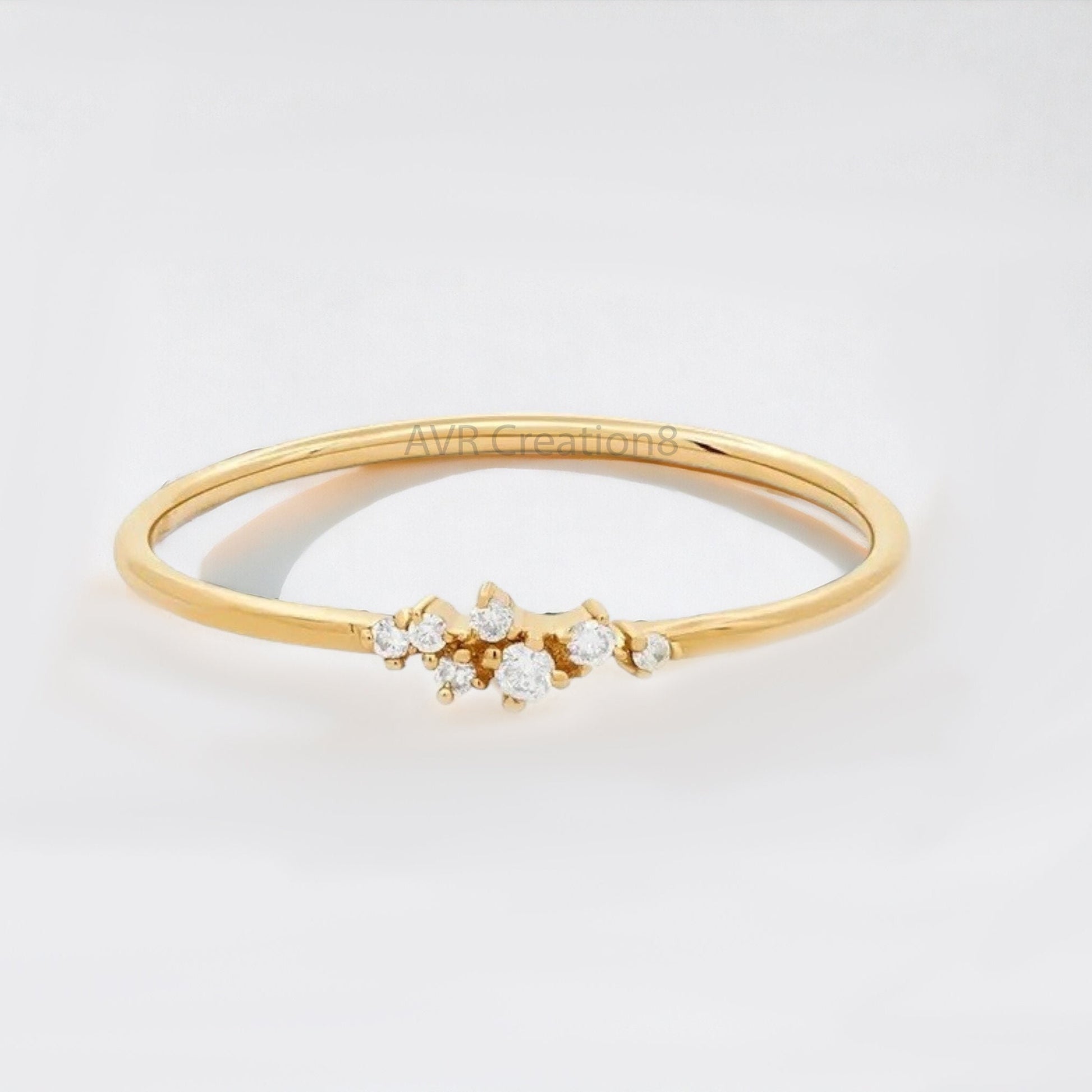 Cluster Dainty Diamond Wedding Ring, Minimalist Diamond Ring, Stackable Ring, 925 Sterling Silver, , Anniversary Gifts, Gifts For Girlfriend