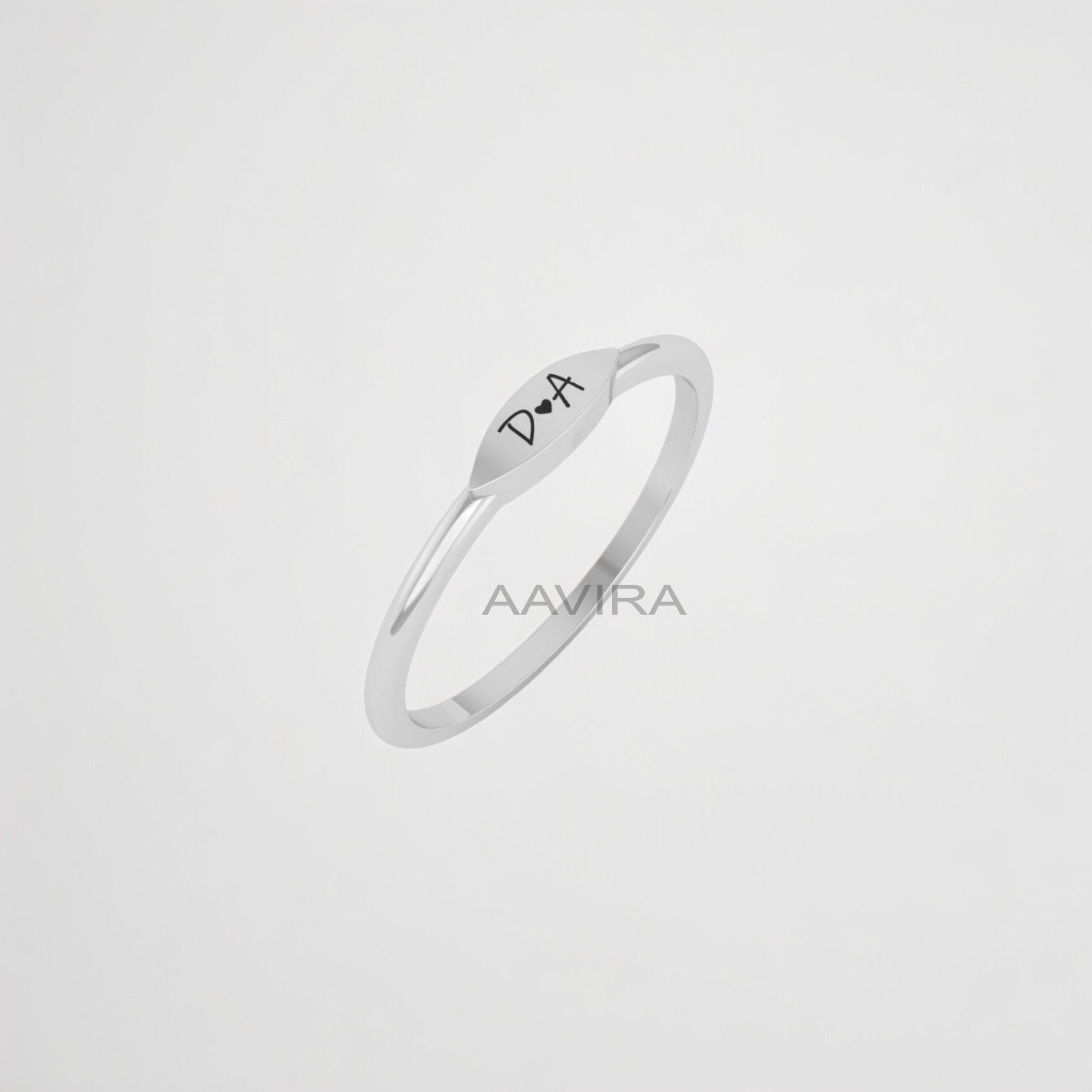 Customization Band Ring/Custom Signet Ring/Initial Band Ring/Silver Stacking Ring/Minimalist Heart Engrave Ring/Couple Initial Ring/Gifts