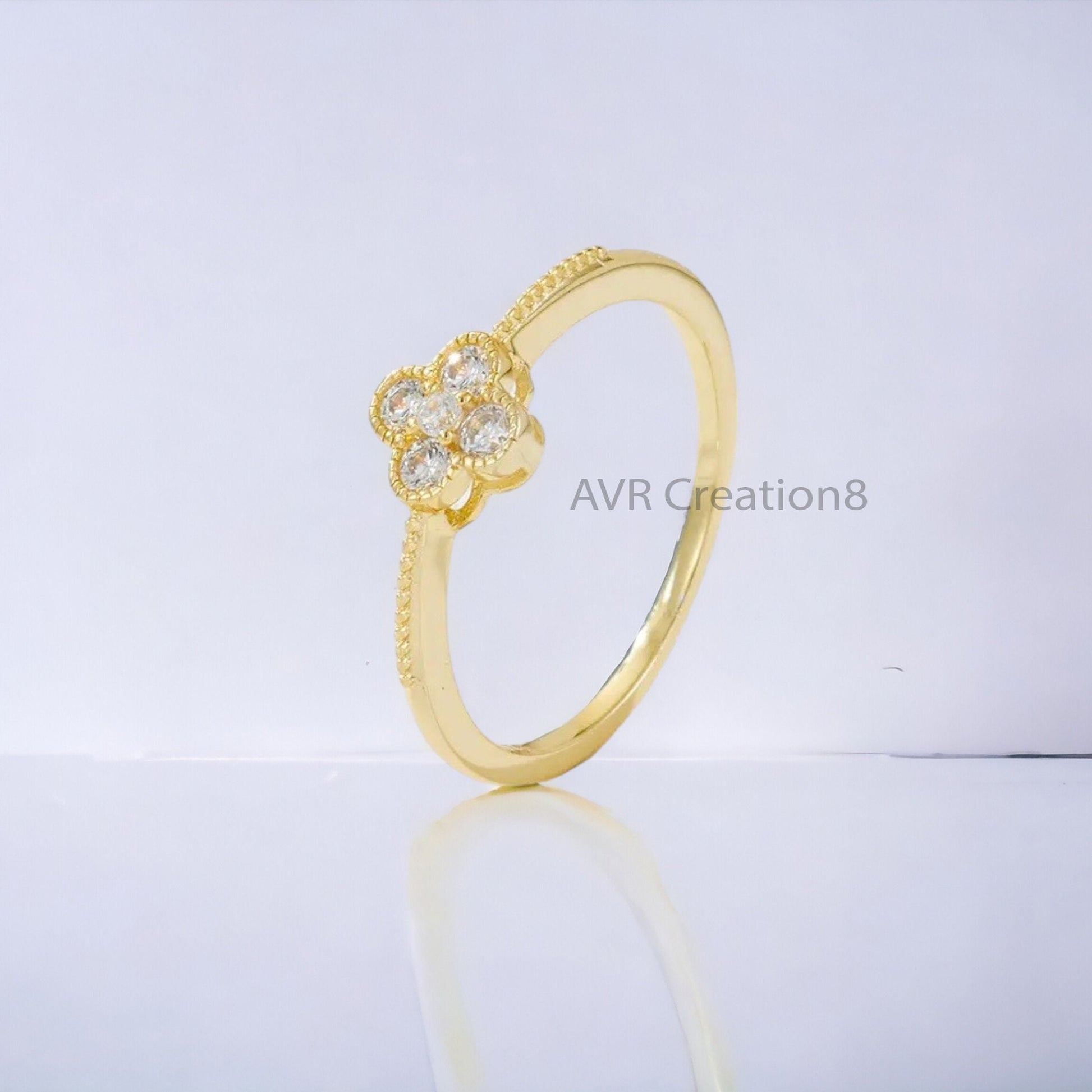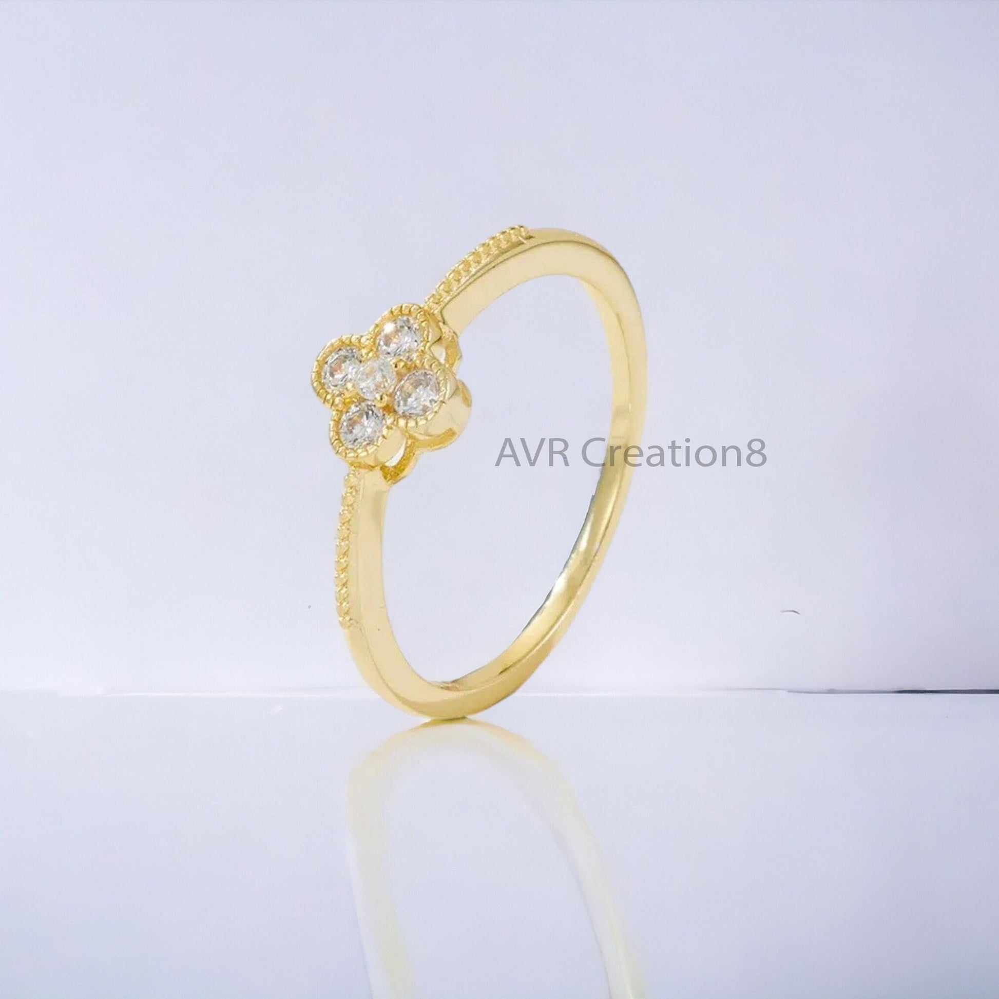 Dainty Diamond Engagement Ring For Her, Stackable Diamond Ring, Five Stone Minimalist Ring, 14K Yellow Gold Plated, Gifts For Girlfriend