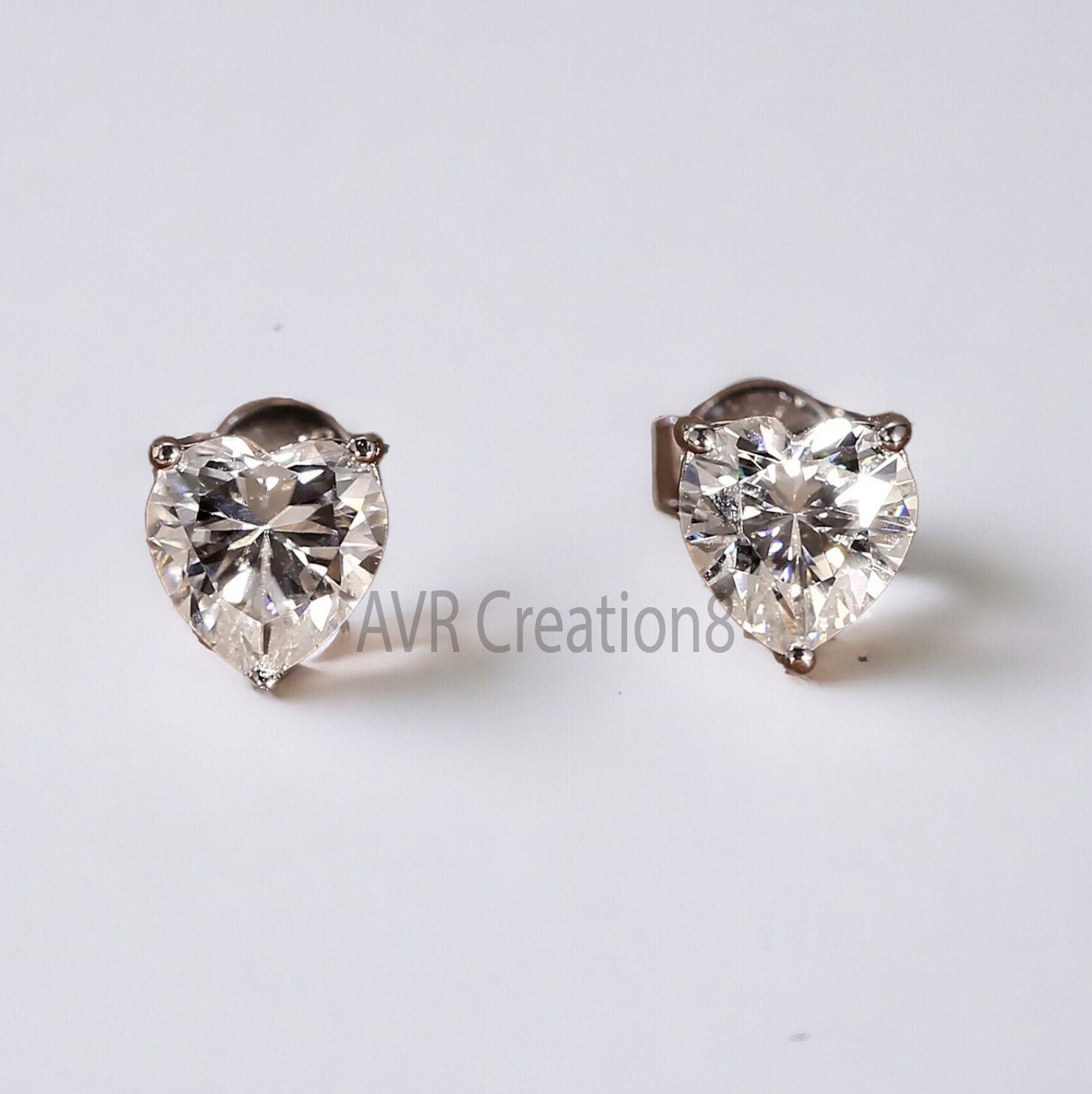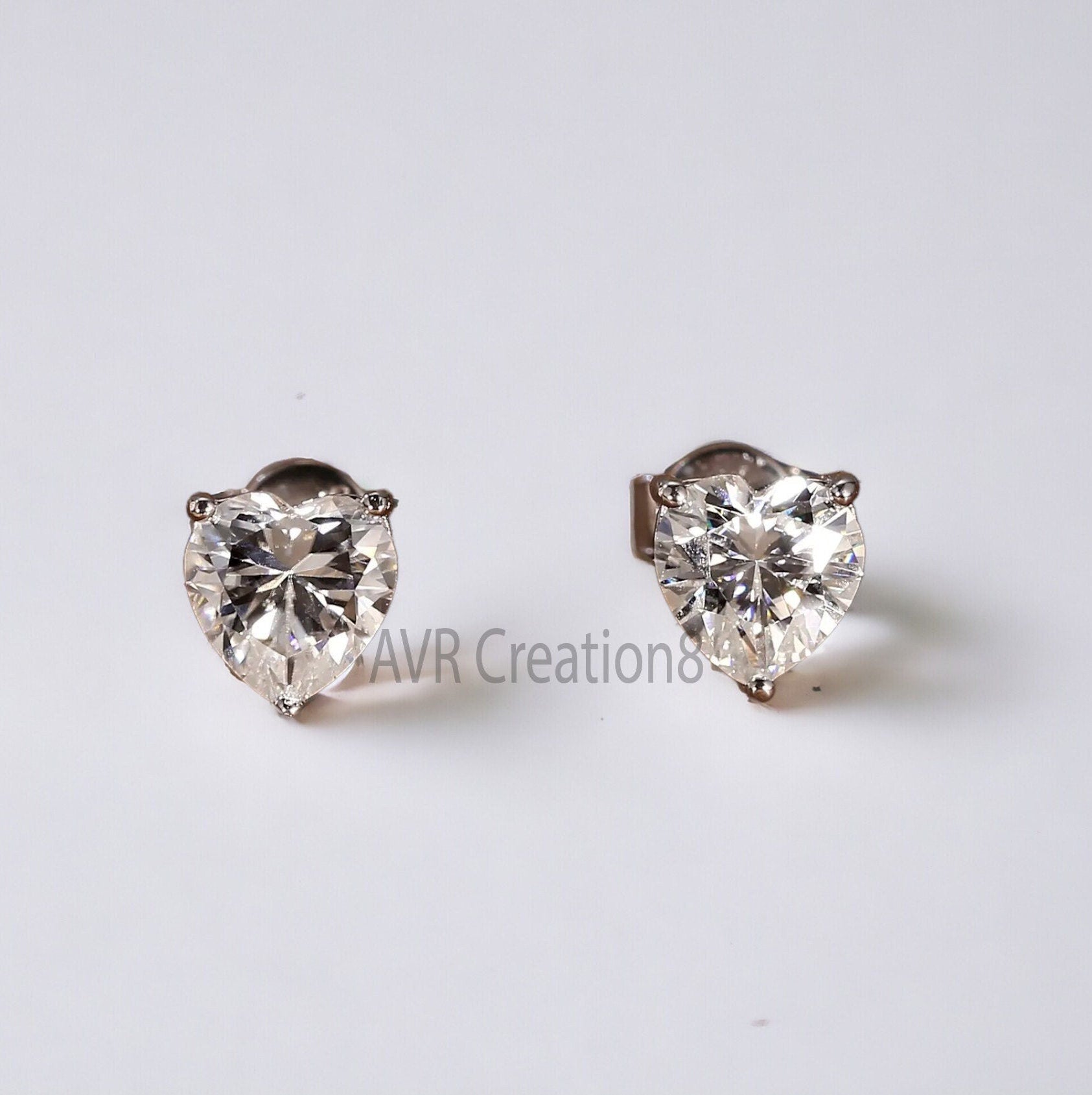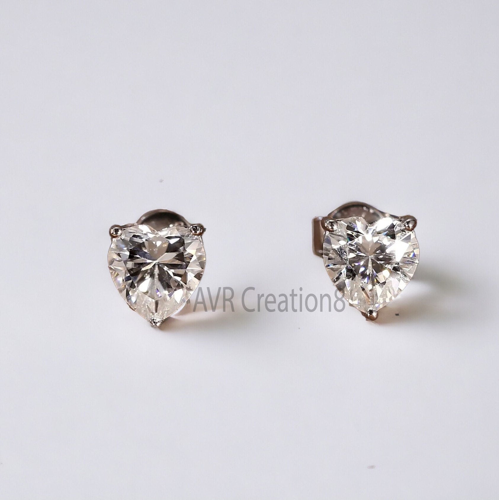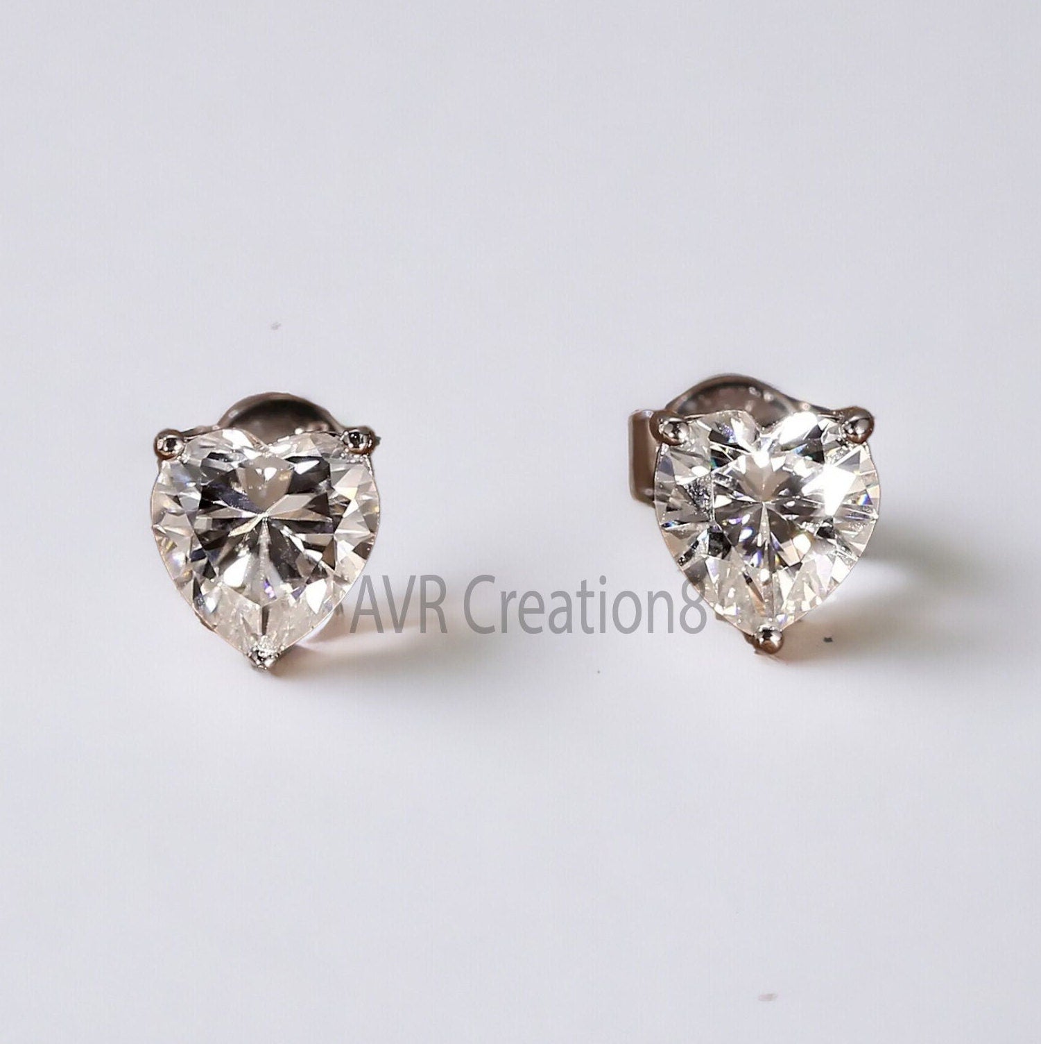 Dainty Heart Cut Stud Pushback Earrings For Women, Minimalist Heart Earring, 14K White Gold Plated, 925 Sterling Silver, Gift For Girlfriend
