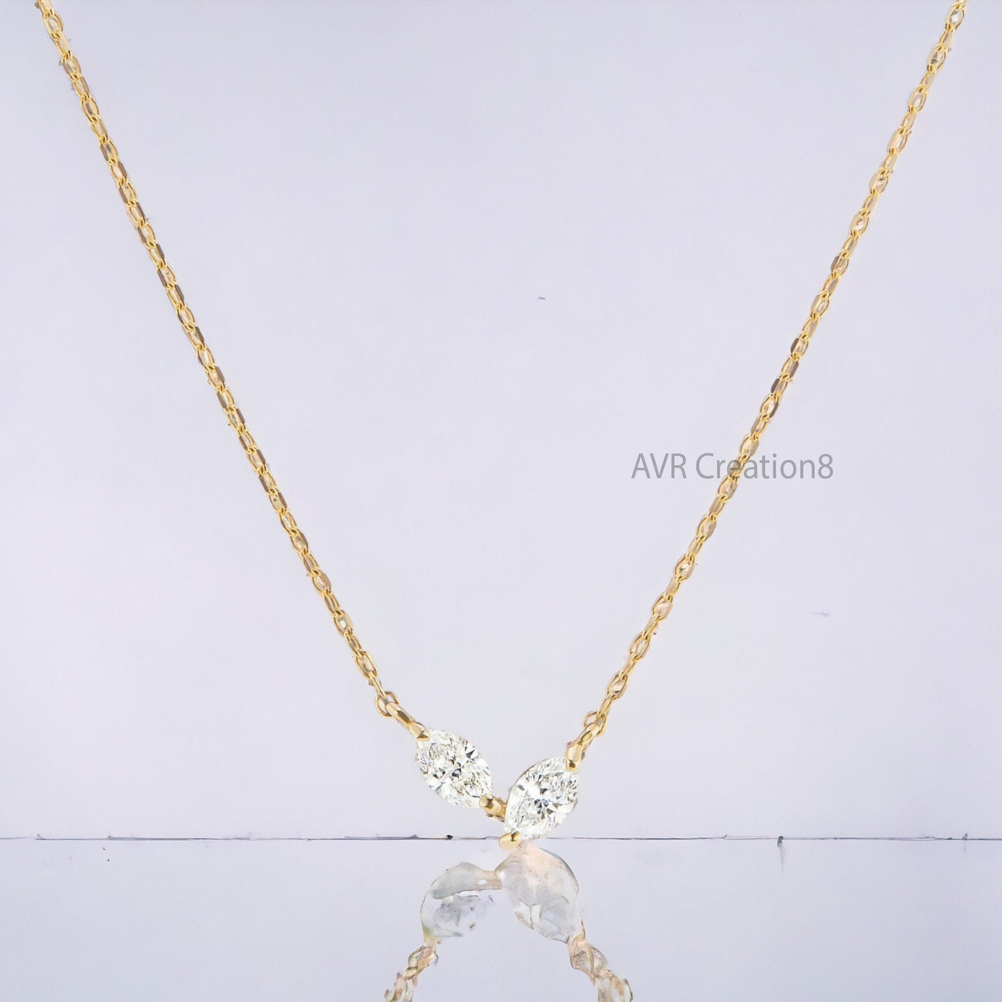 Double Stone Marquise Cut Pendant Necklace With Cable Chain, Diamond Pendant Necklace, Daily Use Pendant, 925 Sterling Silver, Gifts For Her