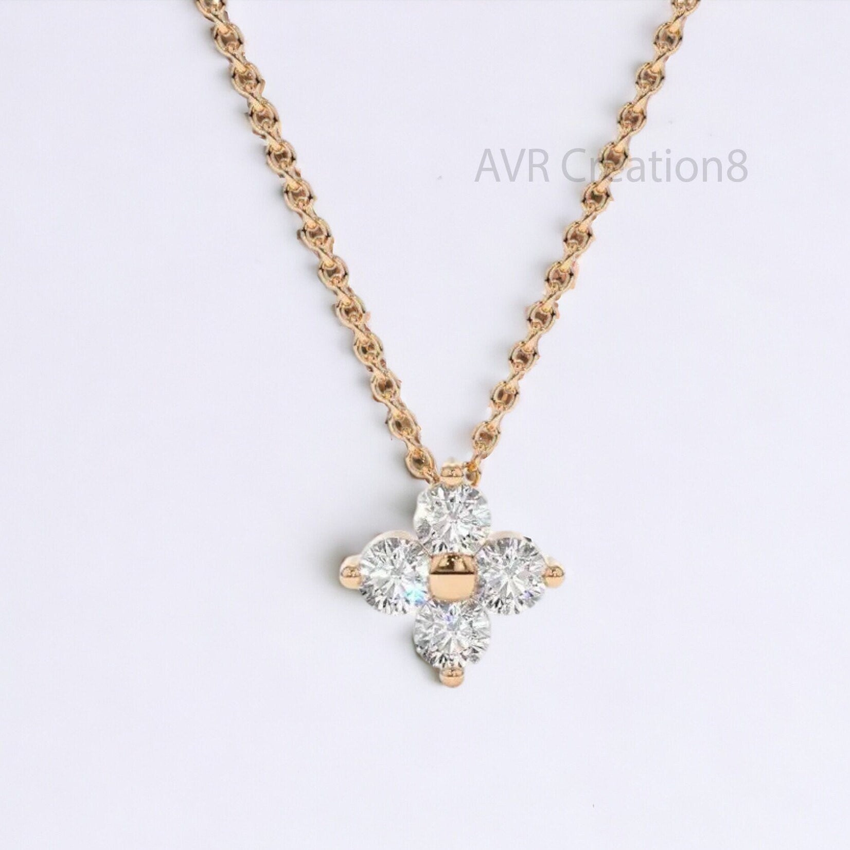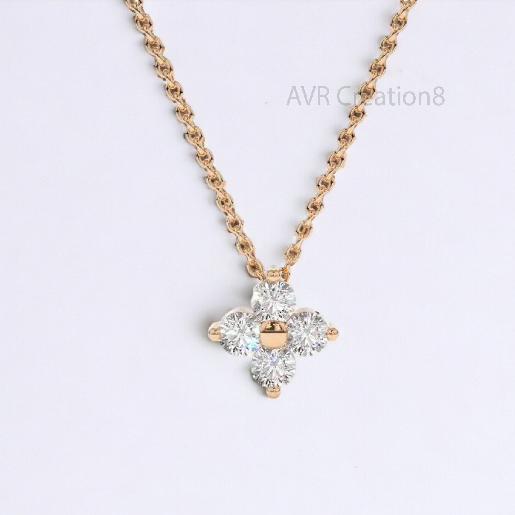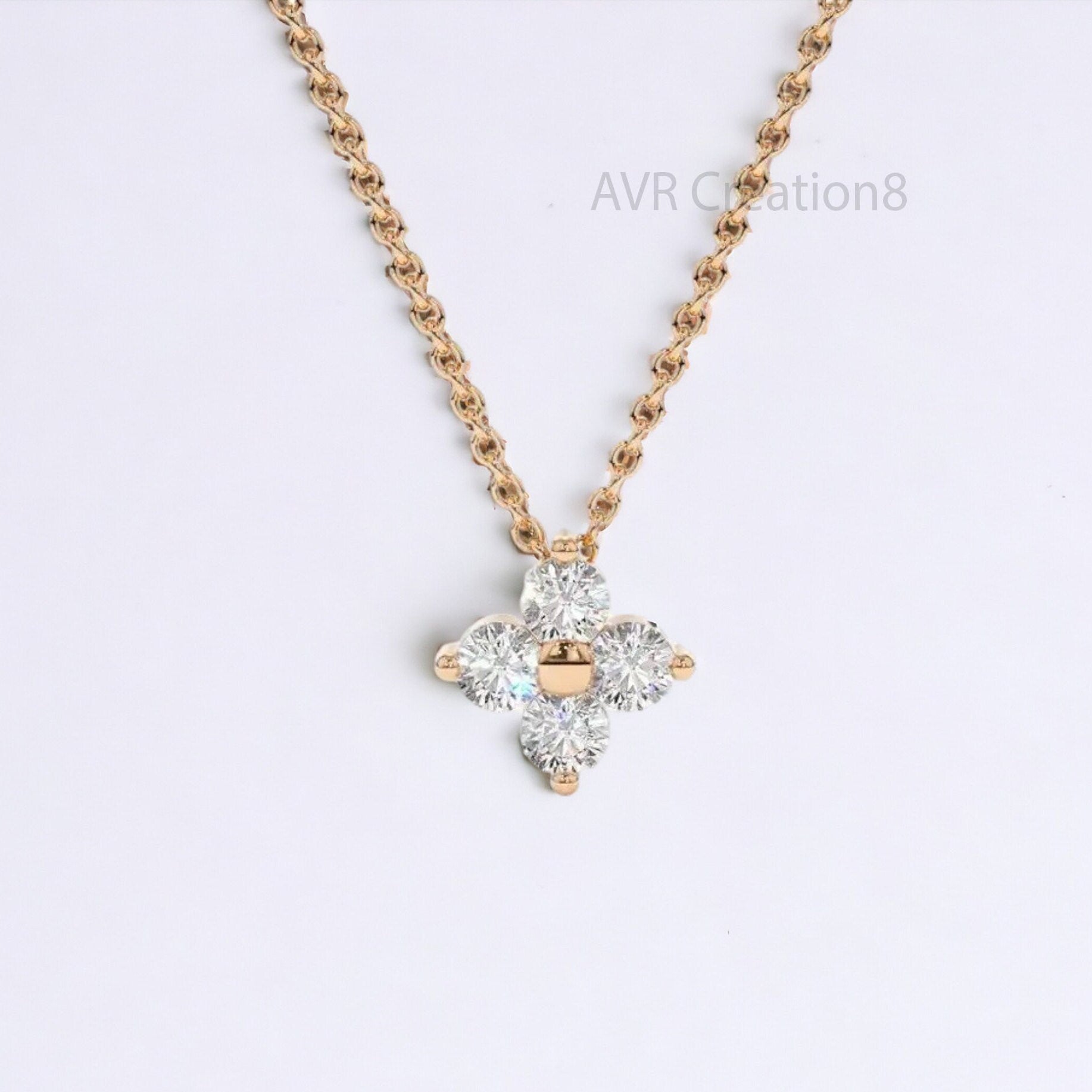 Flower Shape Four Stone Women's Necklace Pendant, Daily Use Handmade Pendant, 925 Sterling Silver, Anniversary Gifts, Gifts For Her