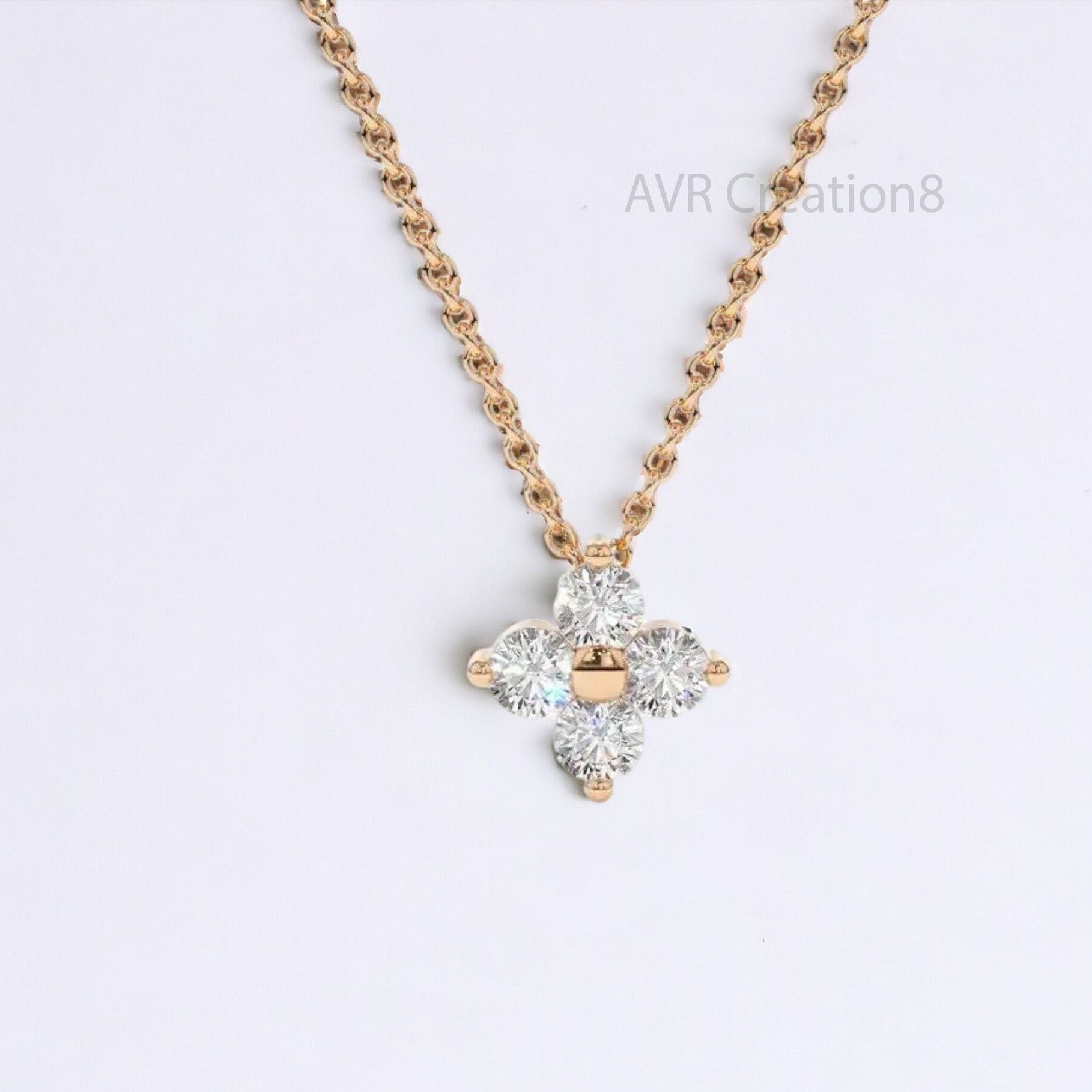 Flower Shape Four Stone Women's Necklace Pendant, Daily Use Handmade Pendant, 925 Sterling Silver, , Anniversary Gifts, Gifts For Her