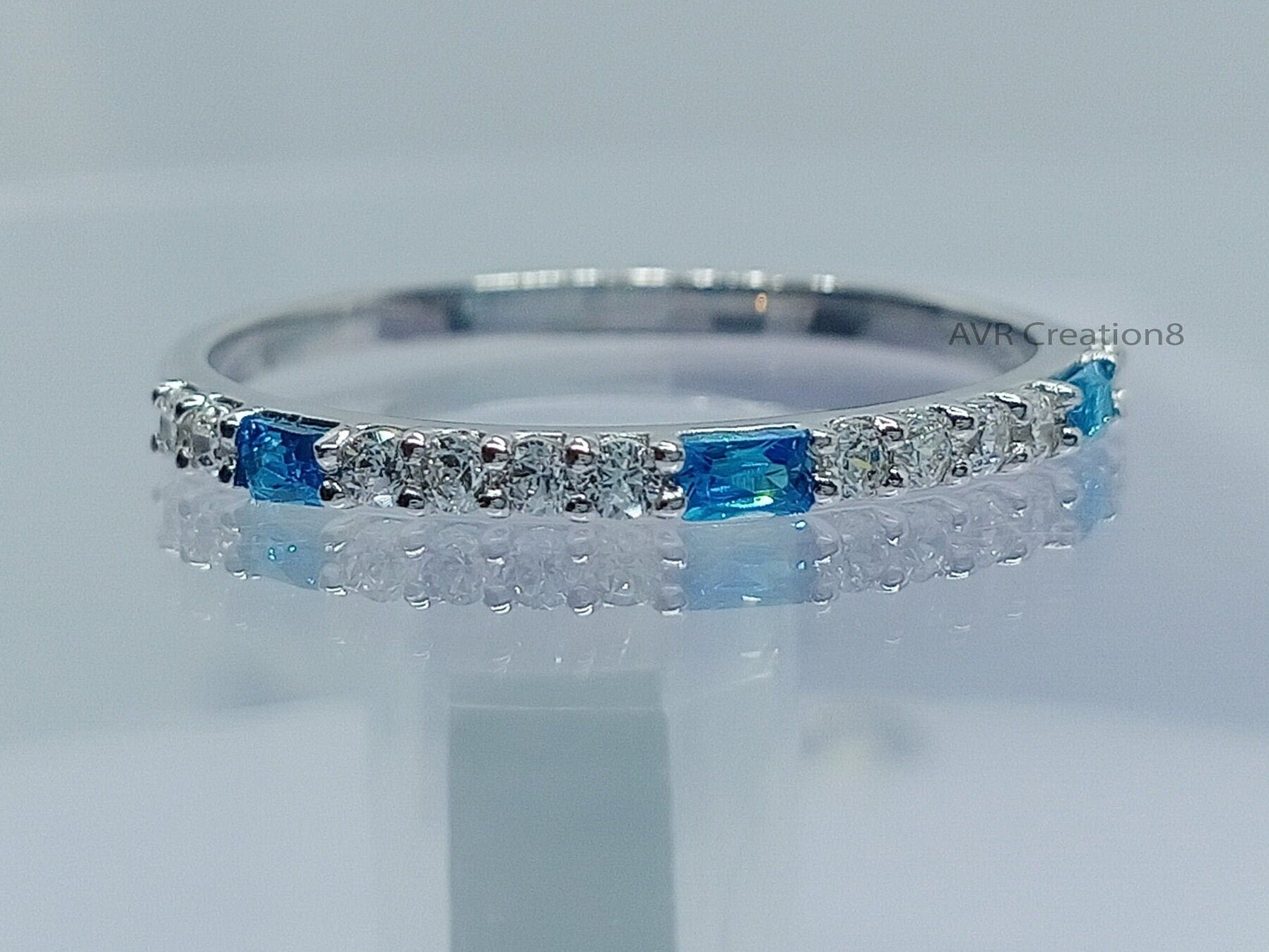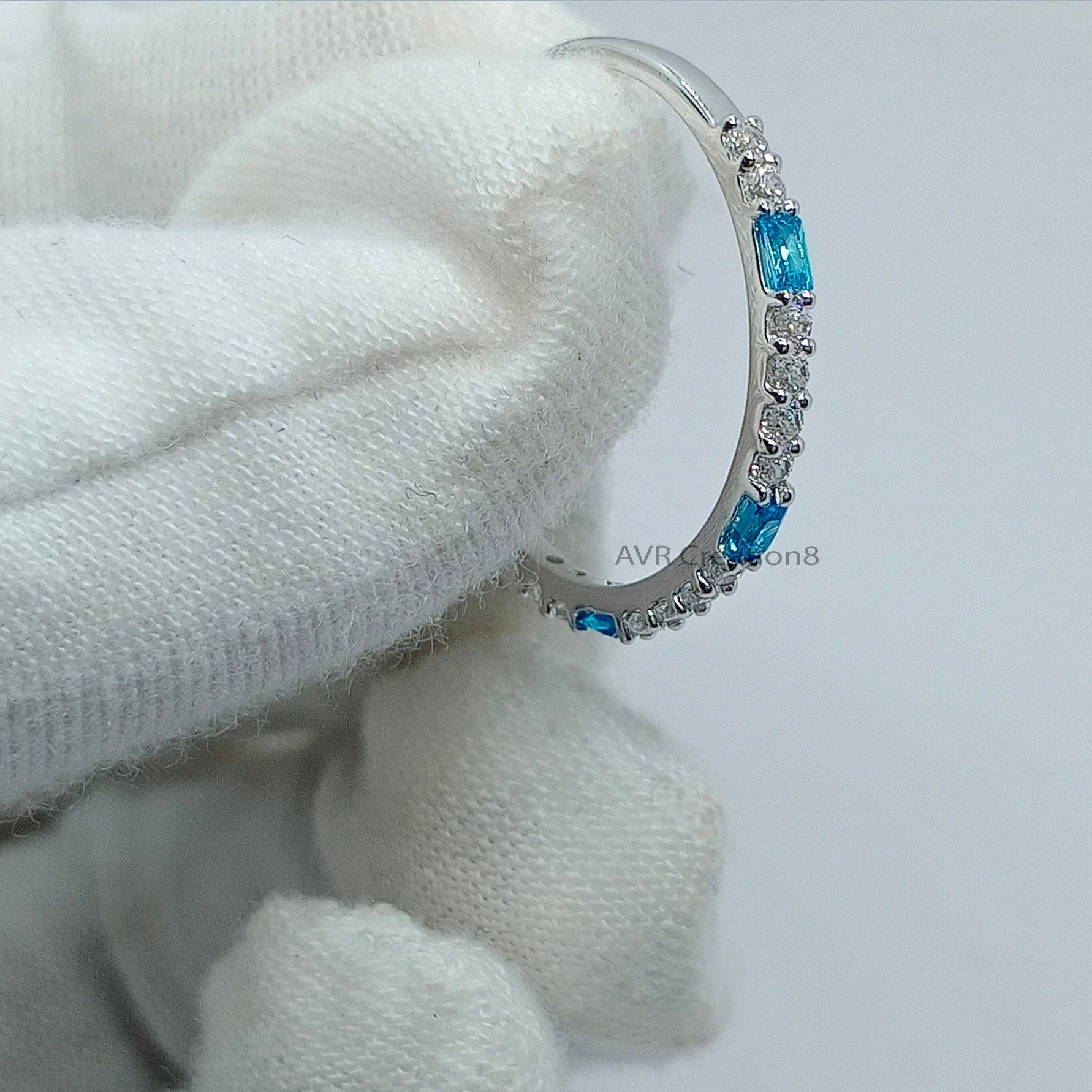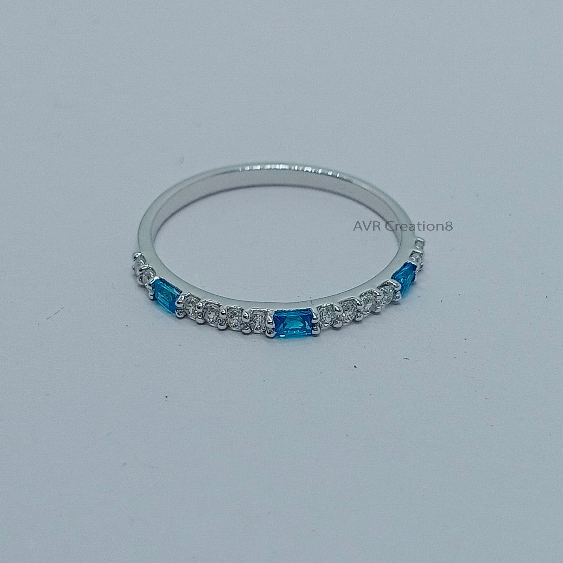 Aquamarine Ring, Half Eternity Ring, Diamond Ring, Gemstone Ring, Stackable Ring, 925 Sterling Silver, Anniversary Ring, Gifts For Her, March Birthstone, Engagement Ring, Dainty Ring, Blue Gemstone, Wedding Band, Promise Ring, Bridesmaid Gift, Delicate Ring, Fine Jewelry, Silver Ring, Baguette Ring, Wedding Gifts, Personalised Gift, Christmas Sale, Christmas Gifts, Anniversary GiftsMinimalist Jewelry, Jewellery For Women's