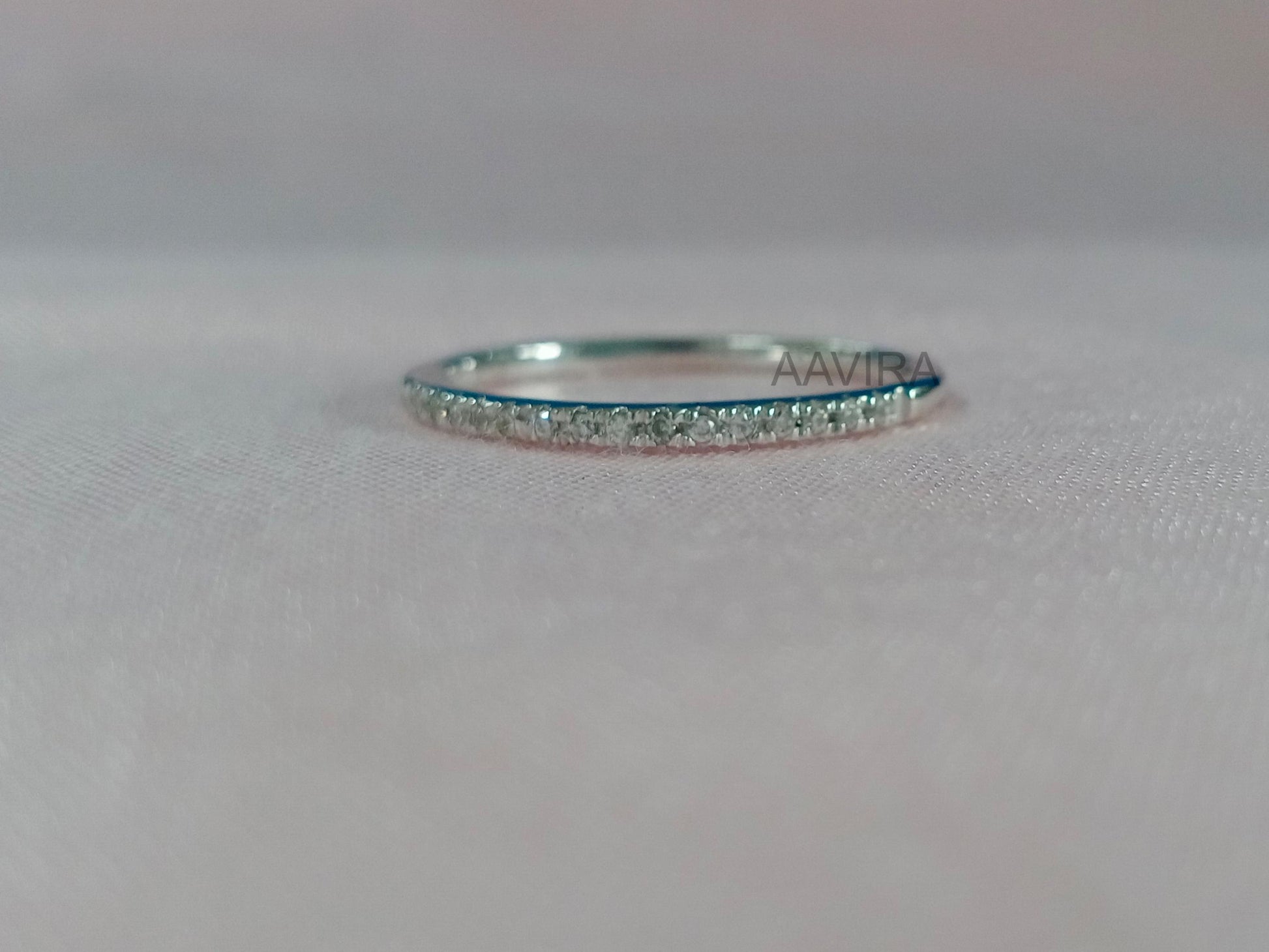 Half Eternity Ring Band, Simple Wedding Band, 14k White Gold Plated, Minimalist Ring, Stackable Band, Silver Band Ring, , Anniversary Gifts, Half Eternity Ring Band, Dainty Wedding Band, ing Band, 925 Sterling Silver, Gifts, Gift For Her