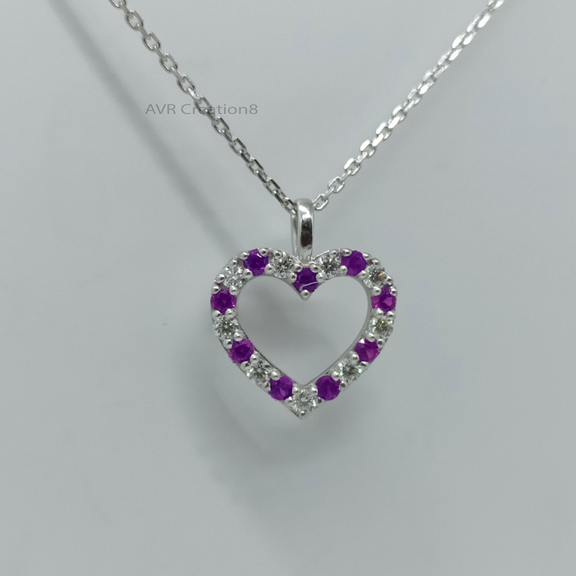 Heart Amethyst Women's Necklace Pendant, Purple Gemstone Pendant, Open Amethyst & Diamond Necklace, 925 Sterling Silver, Gift For Girlfriend, Open Heart Amethyst & Diamond Women's Necklace Pendant, Amethyst & Diamond Pendant, Gemstone Pendant, 925 Sterling Silver, Gifts For Girlfriend