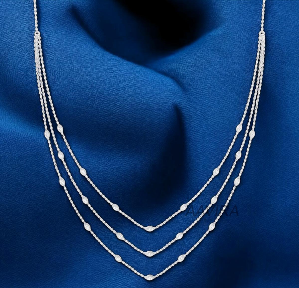 Marquise Diamond Three Layer Necklace, Diamond Jewelry, Layer Necklace For Women, Delicate Necklace, 14k Yellow Gold Plated, Gift For Mom