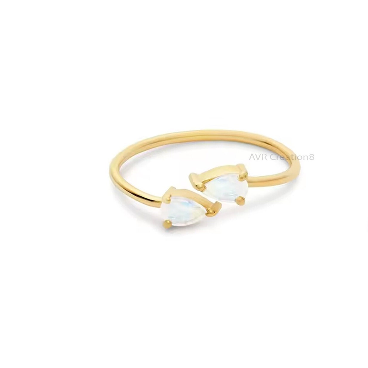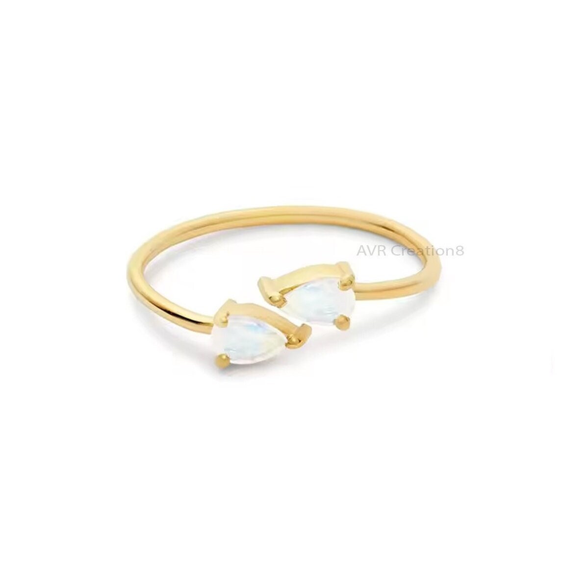 Minimalist Pear Cut Opal Engagement Ring, Two Stone Ring, Opal Gemstone Ring, 925 Sterling Silver, Stackable Ring, Gifts For Girlfriend