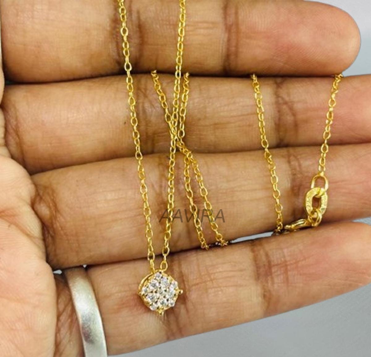 Minimalist Pendant Necklace, Delicate Necklace, Round Pendant, Moissanite Necklace For Women, Party Wear Diamond Necklace, Christmas Gift, , Wedding Giftsƒ?› Plating: 14K Vermeil Gold, 14K Vermeil Rose Gold or White Gold (Rhodium)
