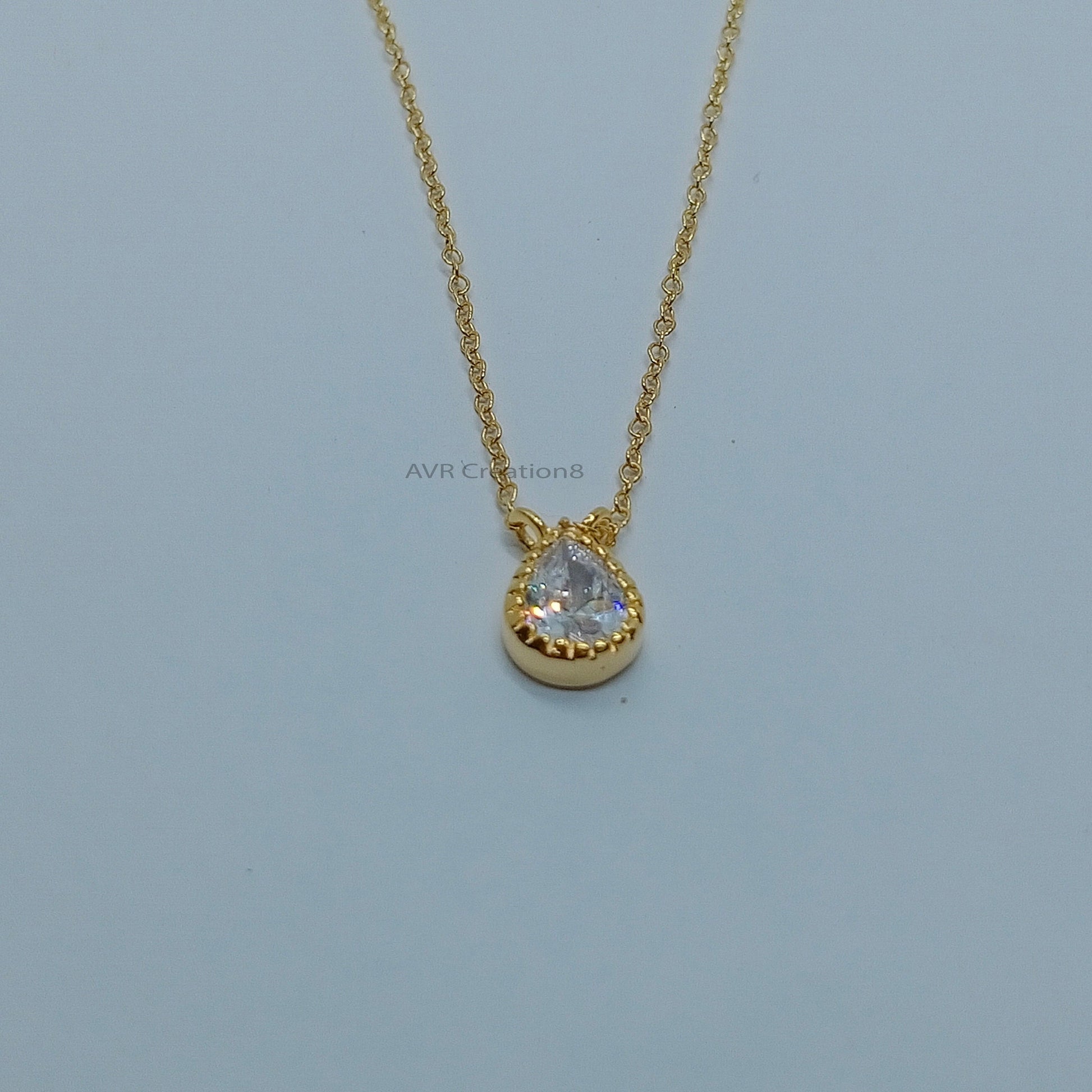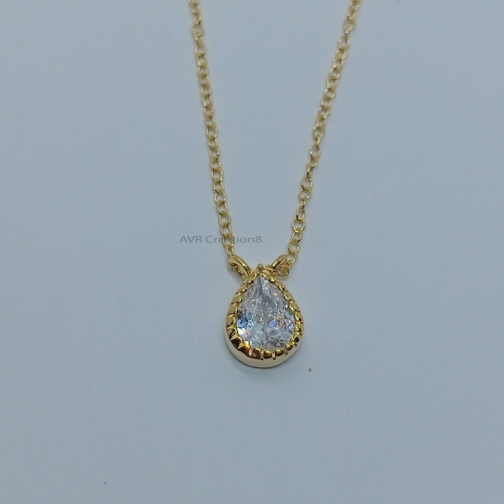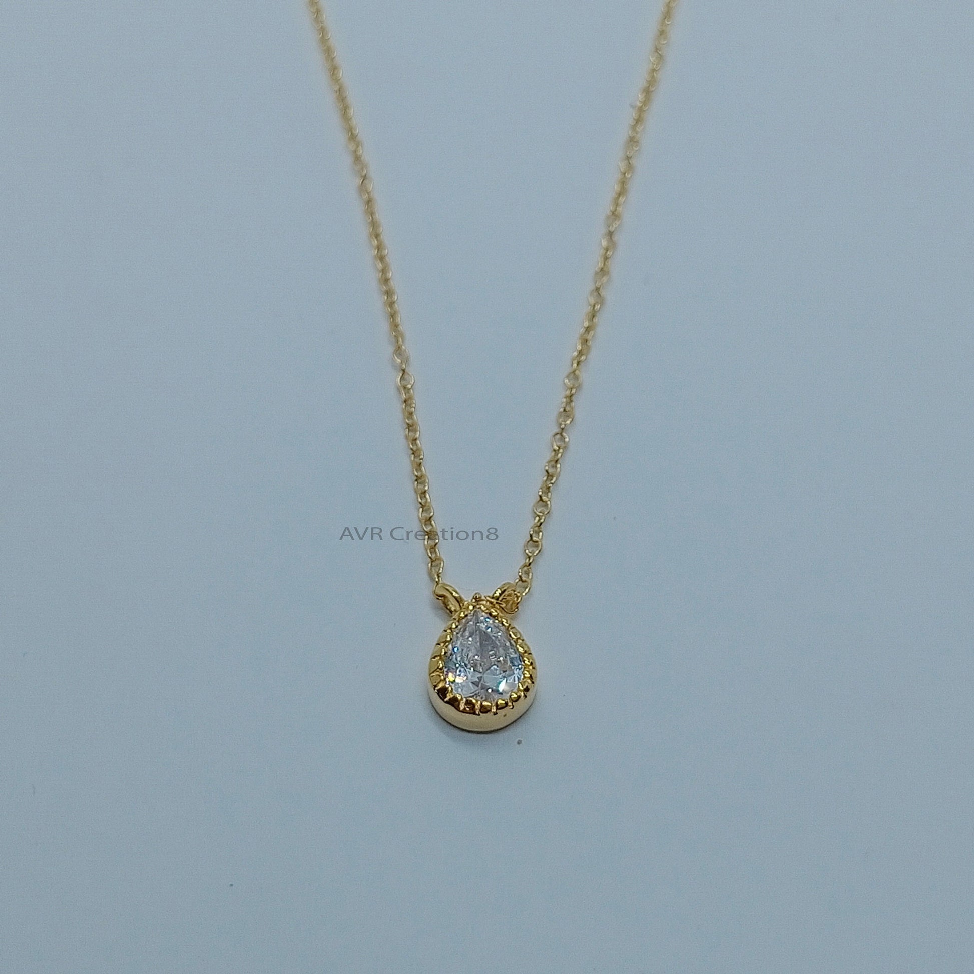 Pear Shape Pendant Necklace For Her, Ladies Solitaire Pear Necklace, 14K Yellow Gold Plated, Teardrop Pendant Necklace, , Wedding Giftsƒ?› Plating: 14K Vermeil Gold, 14K Vermeil Rose Gold or White Gold (Rhodium)
