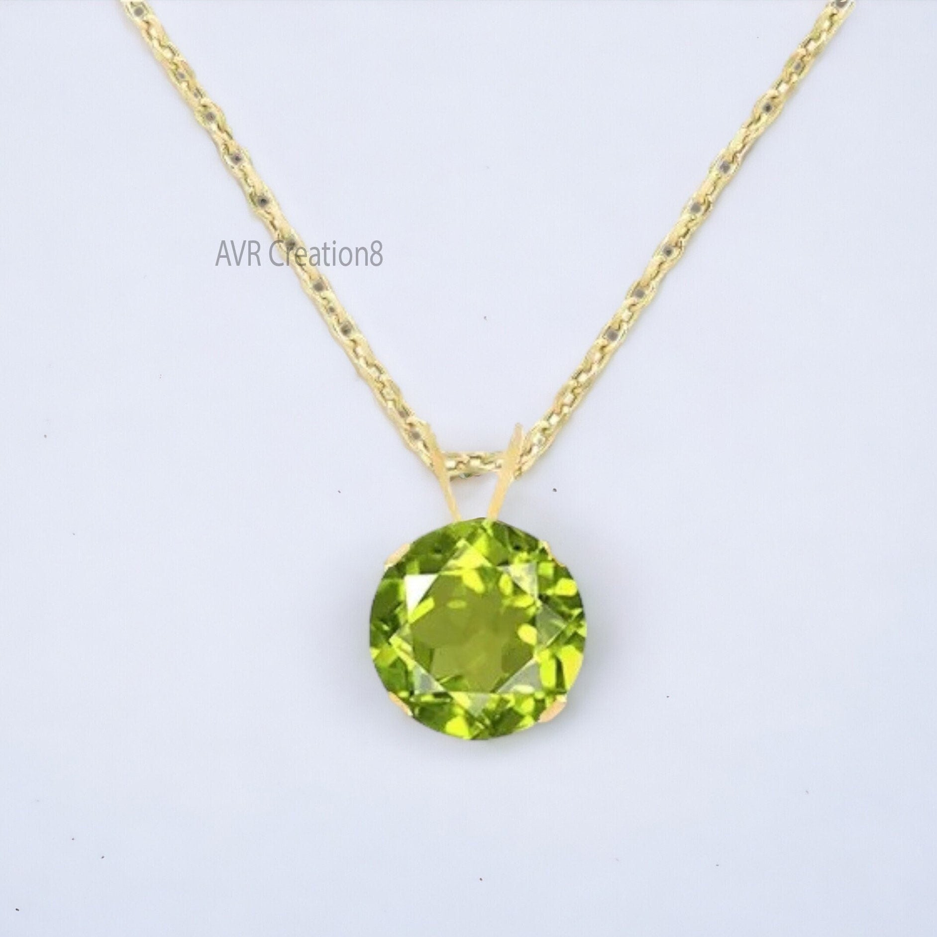Peridot Gemstone Pendant Necklace For Women, August Birthstone Necklace, Single Stone Pendant, 925 Sterling Silver, Pendant For Women