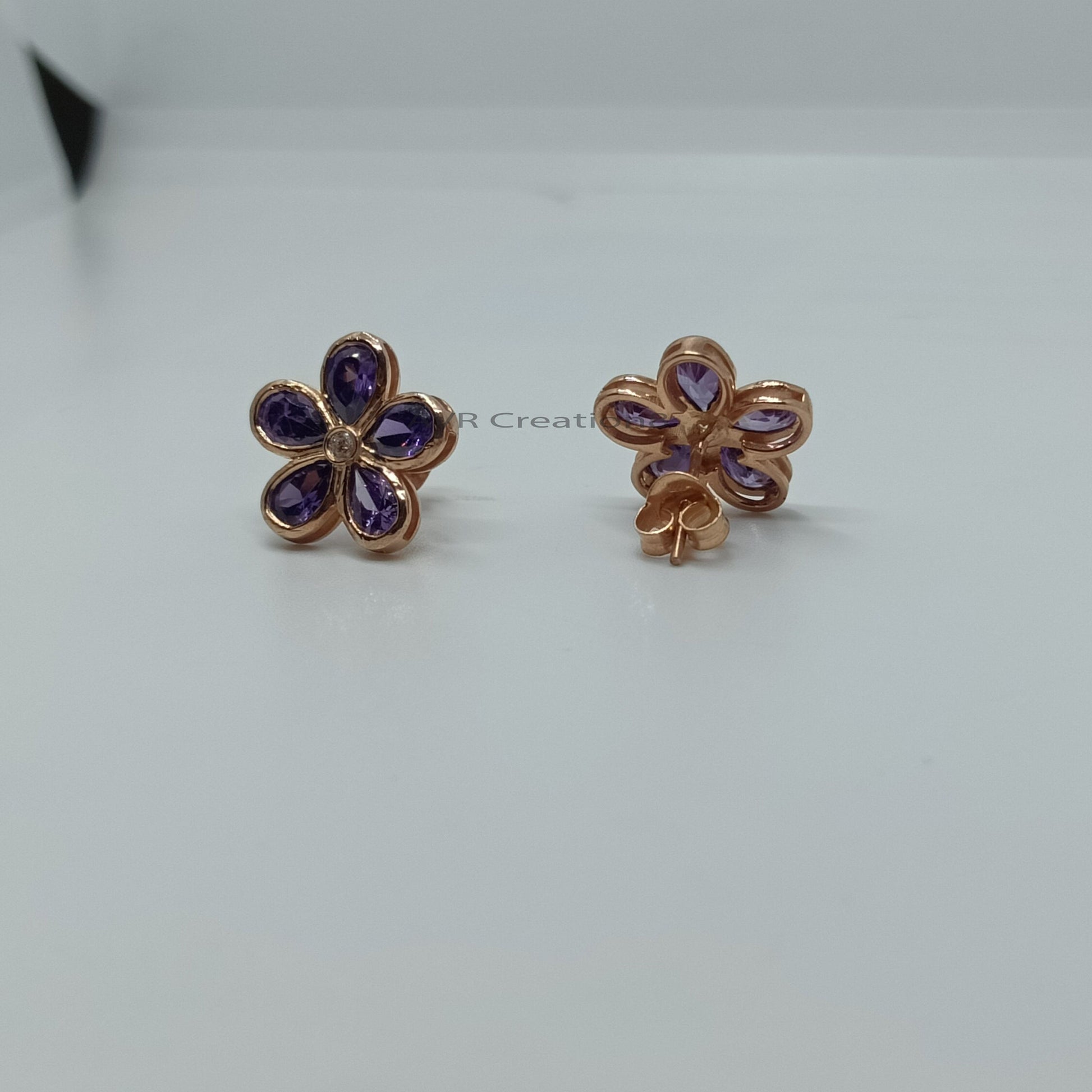 Purple Amethyst, Flower Earrings, Amethyst Earrings, Stud Earrings, 925 Sterling Silver, Pushback Earrings, Minimalist Earrings, , Anniversary Gifts, Gifts For Her, Dainty Earrings, Flower Jewelry, February Birthstone, Purple Gemstone, Rose Gold Plated , Unique Earrings, Birthday Gift, Christmas Gift, Nature Inspired, Floral Earrings., Wedding Gifts, Personalised Gift, Christmas Sale, Christmas Gifts, Anniversary GiftsMinimalist Jewelry, Jewellery For Women's