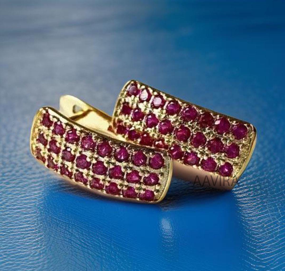 Ruby Earrings, Ruby Hoop Earring, Cluster Ruby Earrings, Handmade Earrings, Wedding Earrings, Bridesmaid Gifts, Clip On Earrings, Women Gift, Unique Hoop Earrings, Blue Sapphire Hoop Earrings For Her, Gemstone Earring, Daily Use Earrings, 14K Yellow Gold Plated, Valentine's Day Gift Earrings, Clip On Earrings, Red Stone Earrings