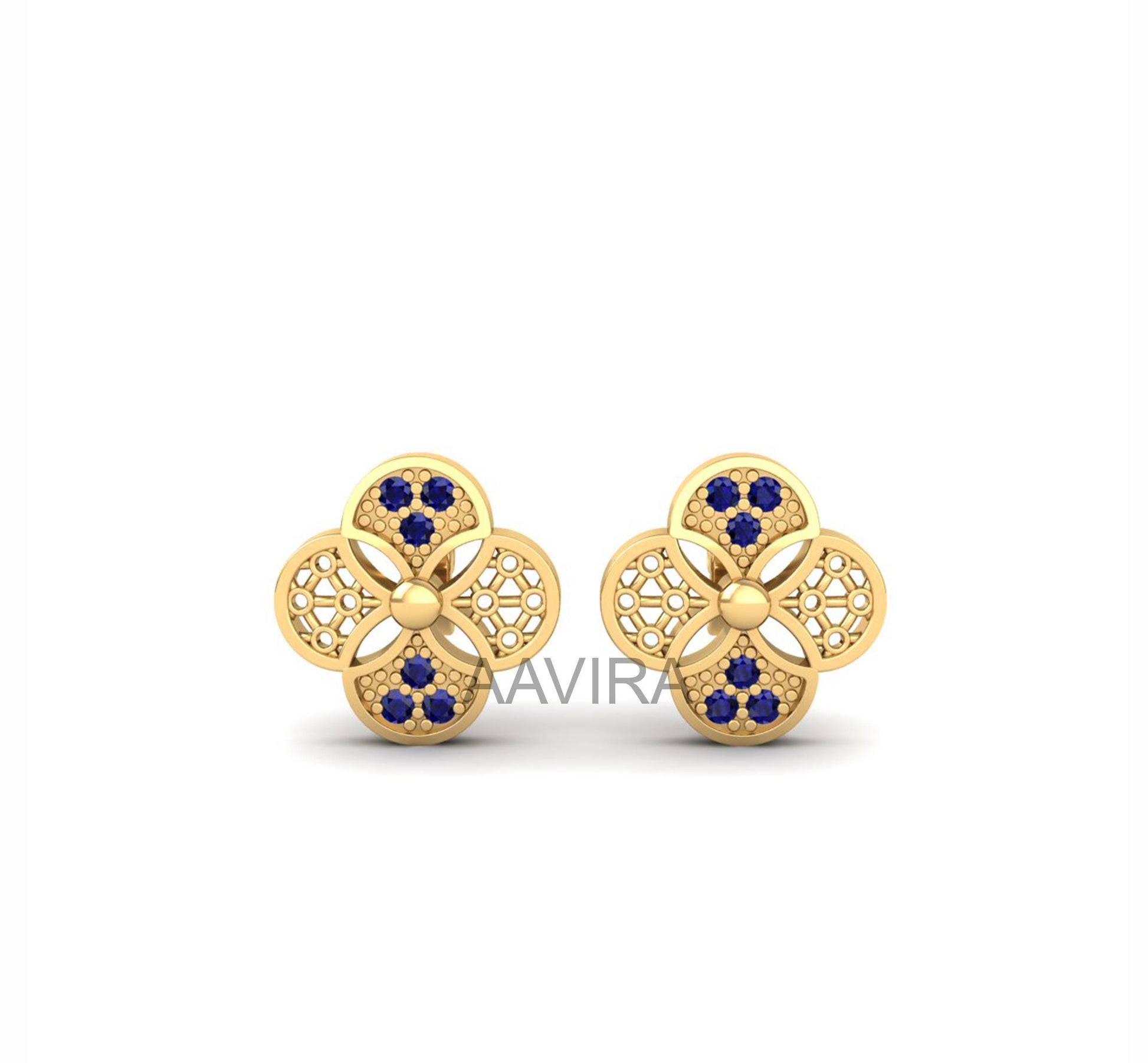 Sapphire Stud Earrings, 14k Yellow Gold Sapphire Earrings, Push Back Earrings, Unique Flower Earrings, Everyday Wear Earrings, Stud Earrings, Round Cut Flower Shape Earrings, Gemstone Stud Earrings, 14K Yellow Gold Plated, Mothers Day Gifts, Gift
