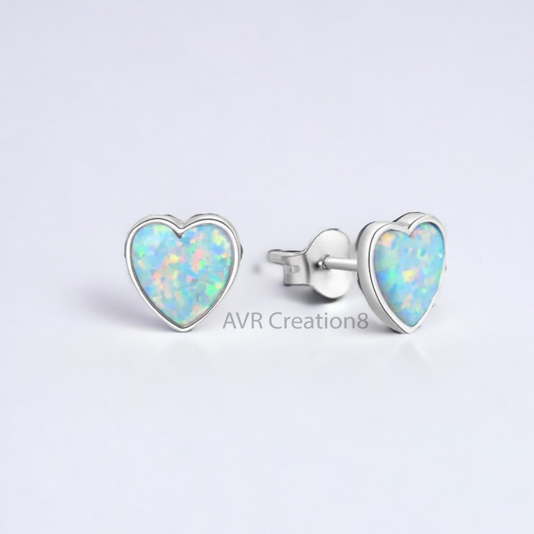 Small Heart Shape Opal Stud Earrings For Her, White Opal Earrings, Daily Use Stud Earring, 925 Sterling Silver, Perfect for Everyday Wear