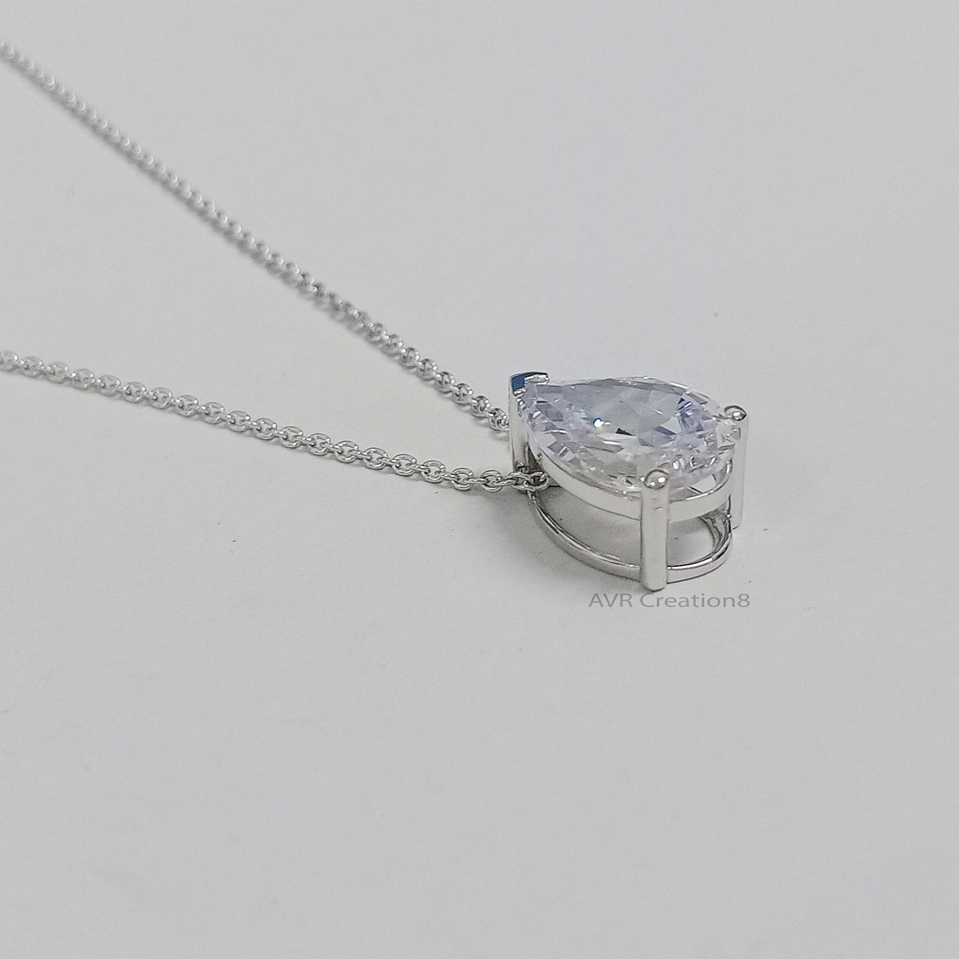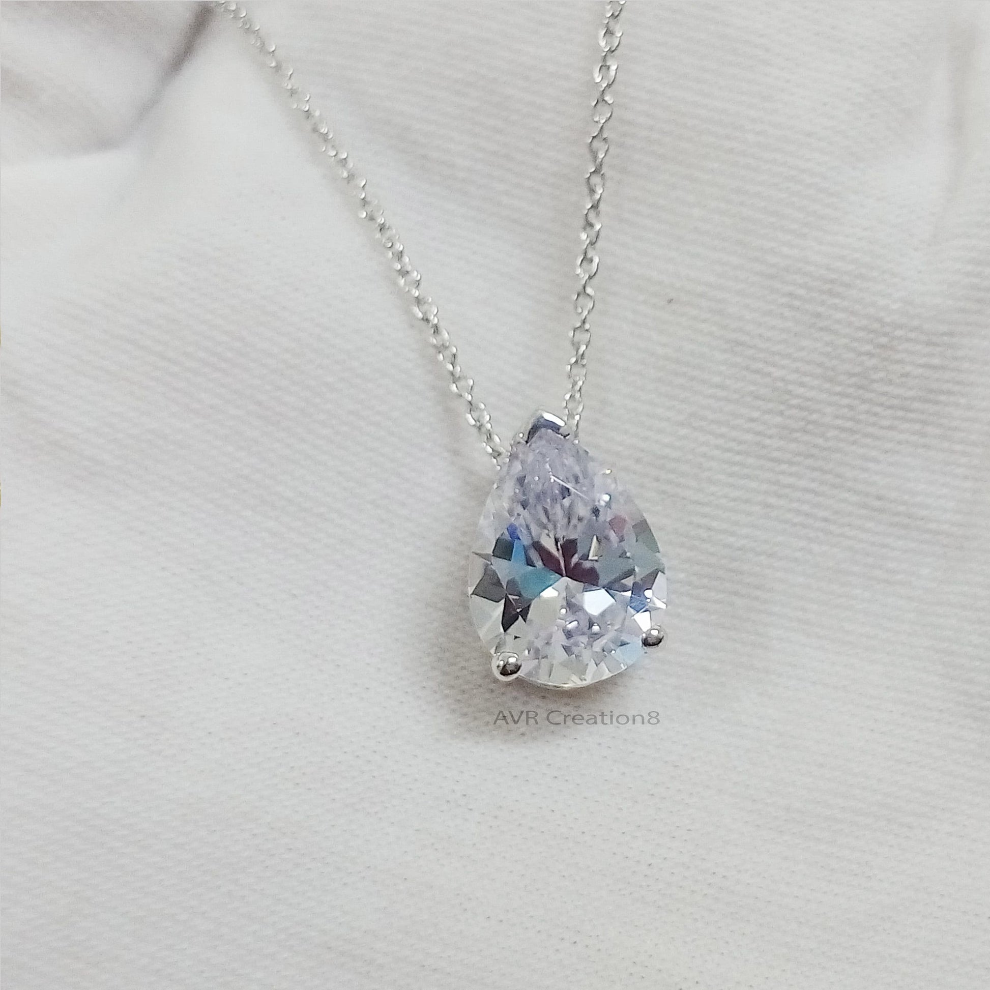 Teardrop Pendant Necklace with chain, Pear Cut Solitaire Pendant, 925 Sterling Silver, Single Stone Pendant, Pendant For Girl, Gifts For Her