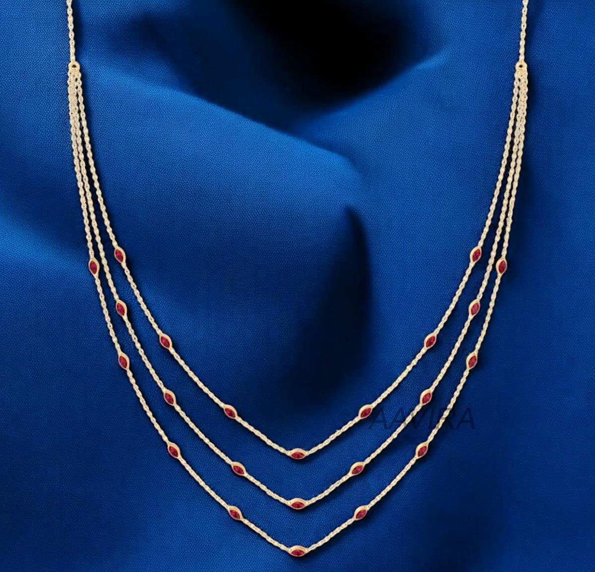Three Layer Necklace, Ruby Gemstone Layer Necklace, Marquise Ruby Necklace For Her, Women's Necklace, Bridesmaid Gift, Anniversary Necklace, Gifts, Marquise Necklace, Dainty Necklace Pendant