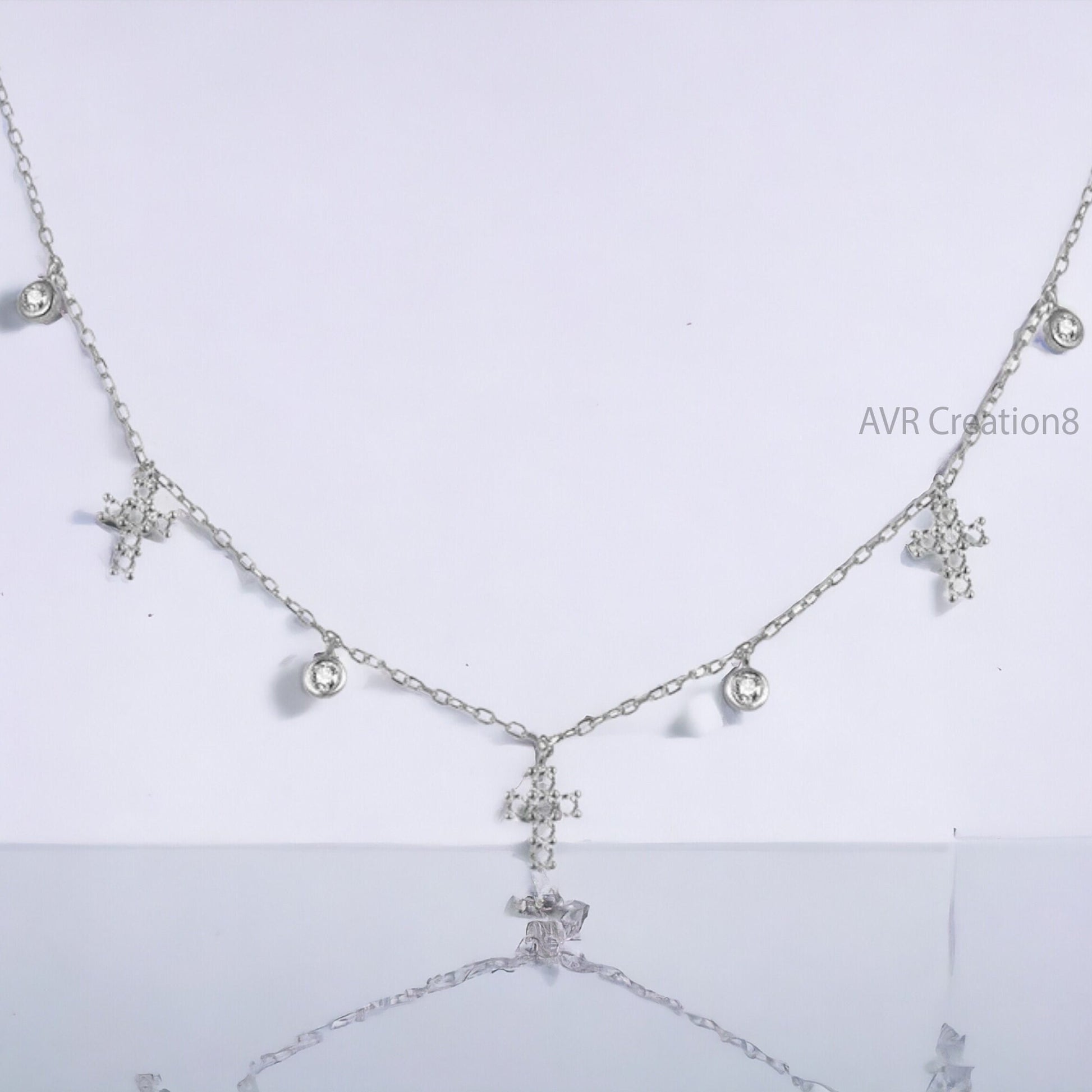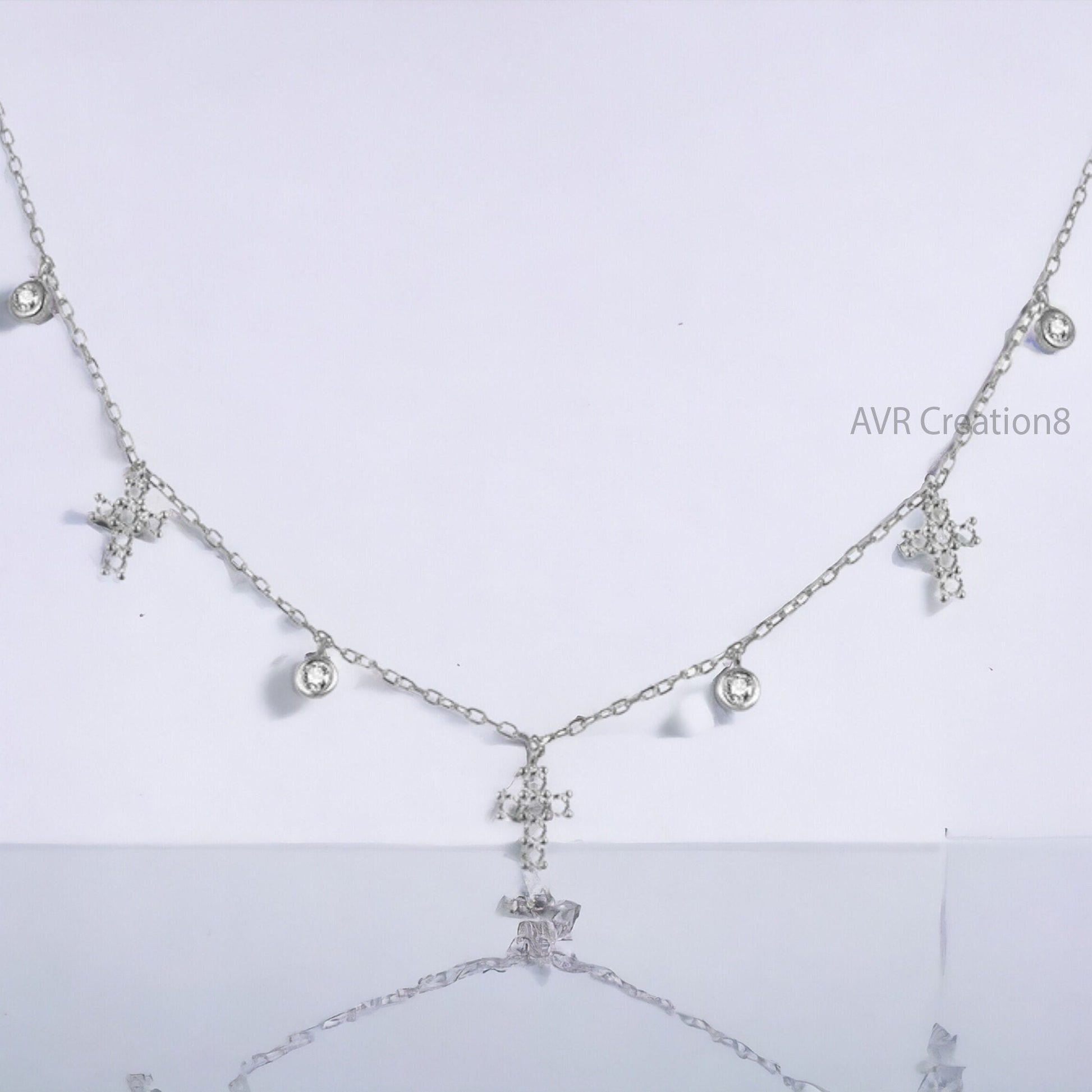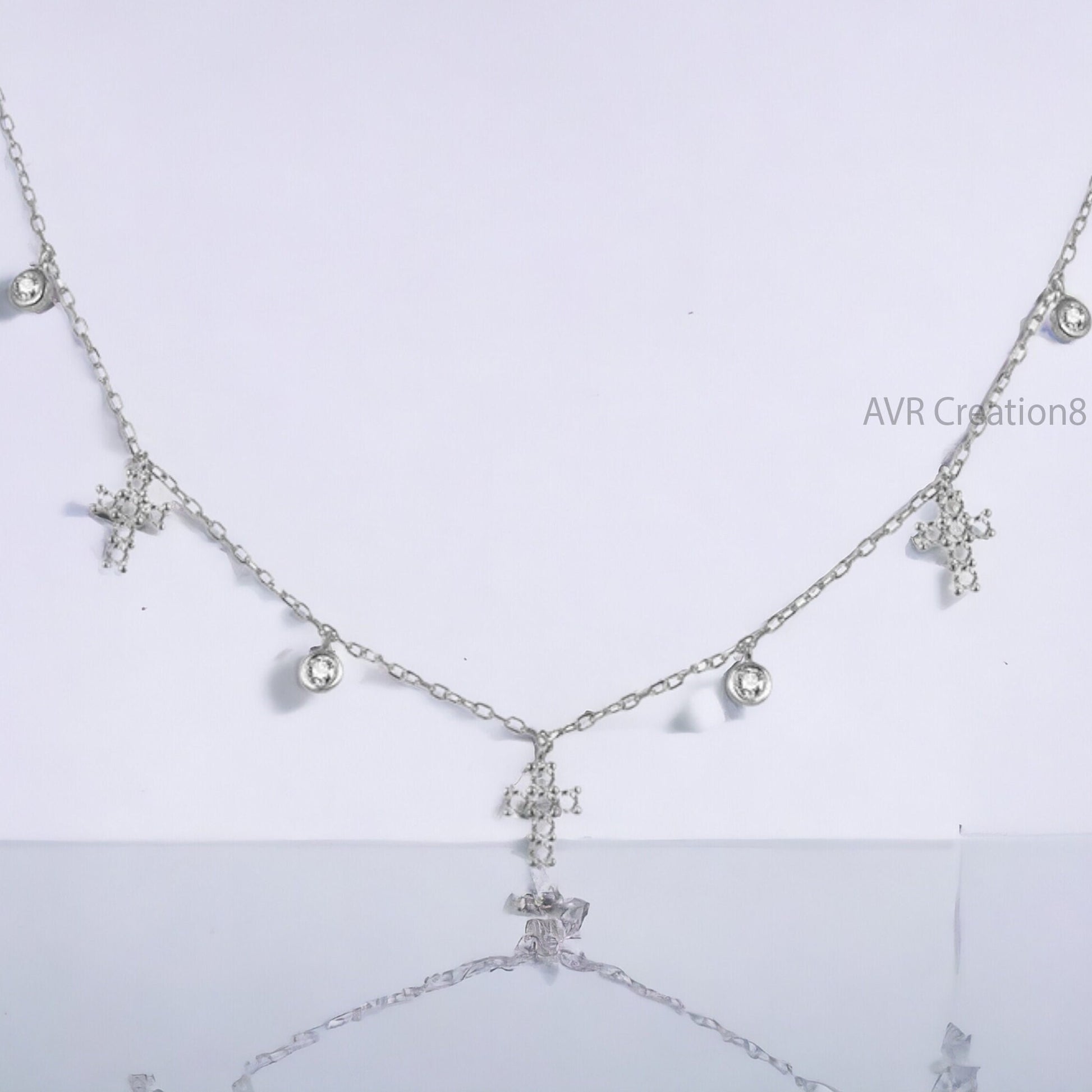 Tiny Cross Station Women Necklace Pendant For Her, Diamond Station Necklace, Daily Use Pendant, 925 Sterling Silver, Gifts For Girlfriend