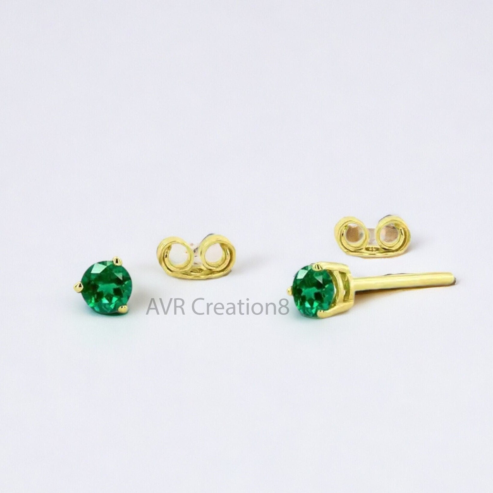 Tiny Green Emerald Diamond Stud Earrings For Her, May Gemstone Earrings, Daily Use Stud Earring, 925 Sterling Silver, Gifts For Girlfriend