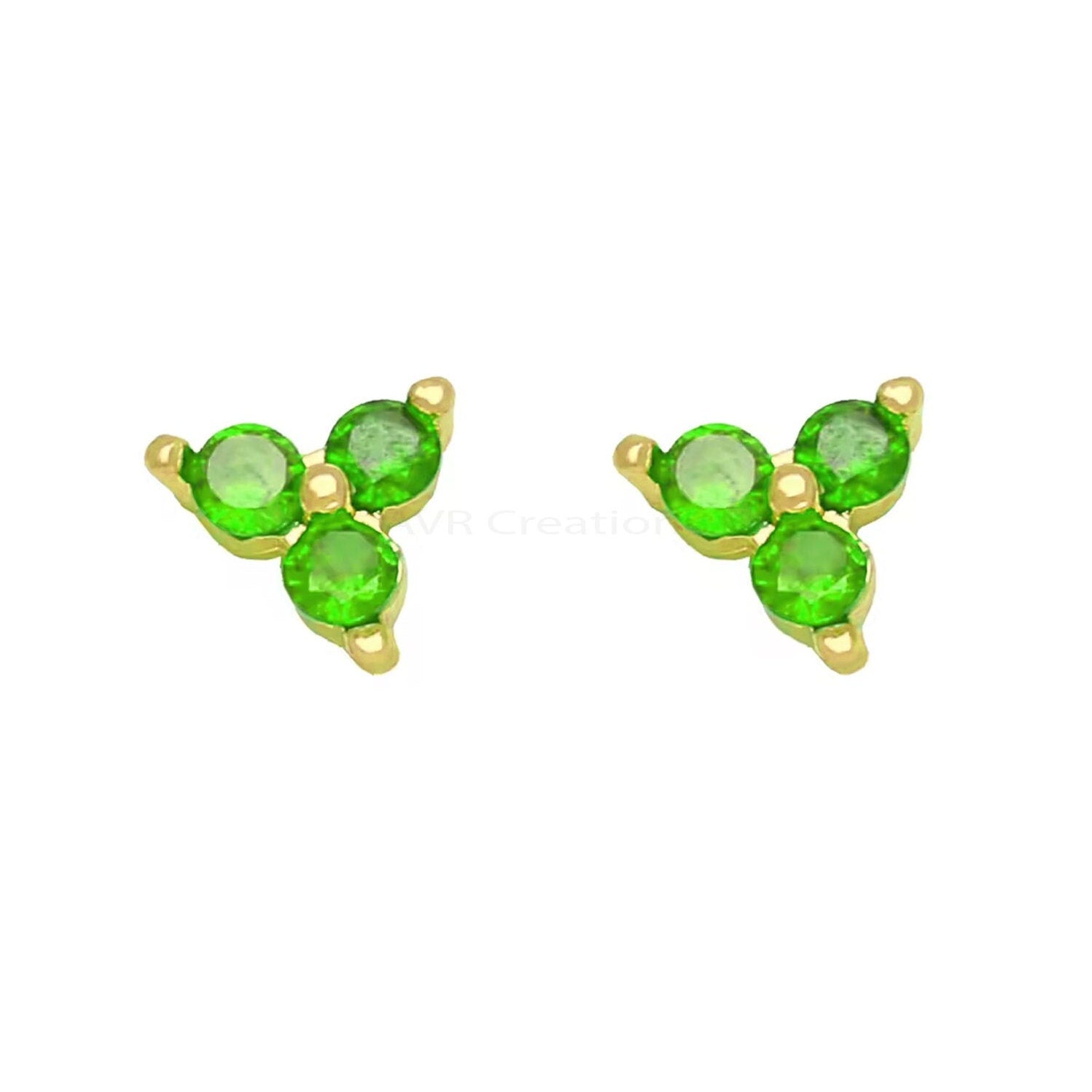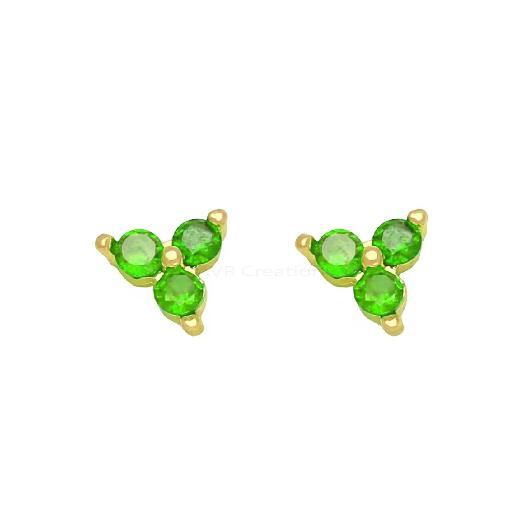 Trio Green Emerald Solitaire Stud Earrings, May Birthstone Earrings, Green Gemstone Earrings, 925 Sterling Silver, Earrings For Women