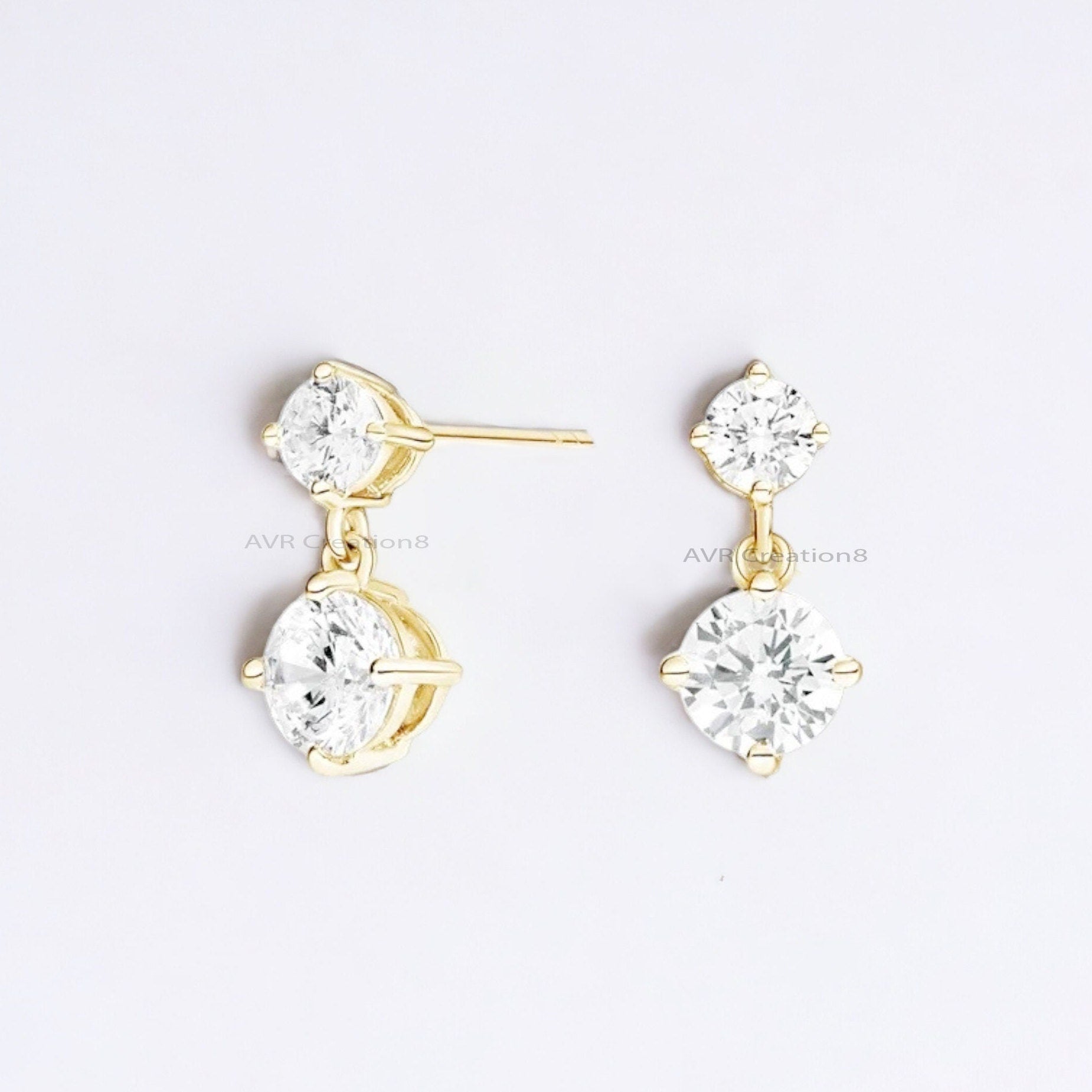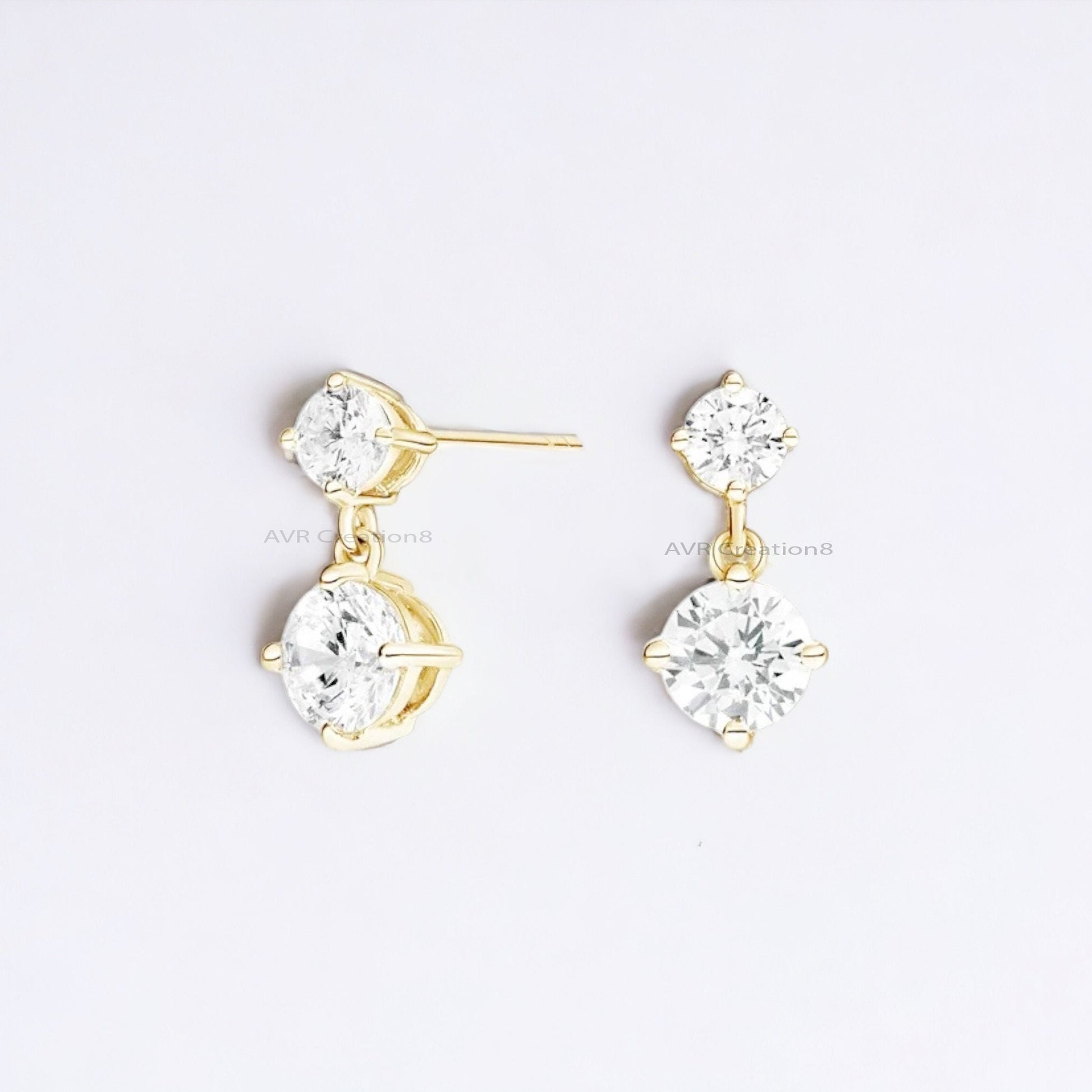 Two Stone Dainty Diamond Stud Earrings For Women, Daily Use Stud Earring, Minimalist Earrings, 14K Yellow Gold Plated, Gifts For Girlfriend