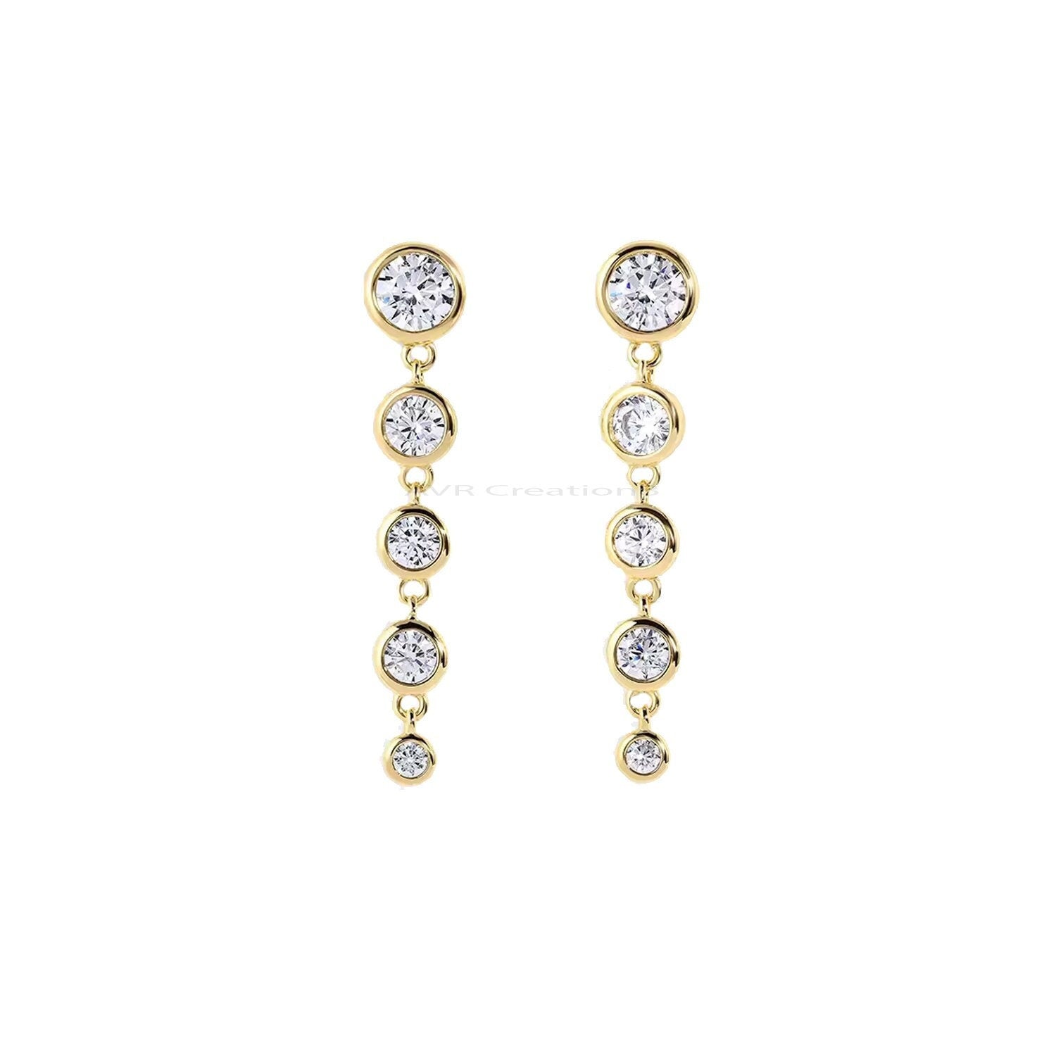 Round Cut Diamond Dangle Earrings For Her, Bezel Set Dangle Earrings, 14K Yellow Gold Plated, Five Stone Dangle Earrings, Earrings For Women, Dangle Earrings for Mom, Gifts for Mom, Moissanite Dangle Earrings, Dangle Drop Earrings, Dainty Bezel Drop Earrings, Round Cut Diamond Dangle Earrings, Bridal Earrings / Wedding Earrings, Anniversary Gift for Her, Special Occasion Earrings, Minimalist Diamond Dangle